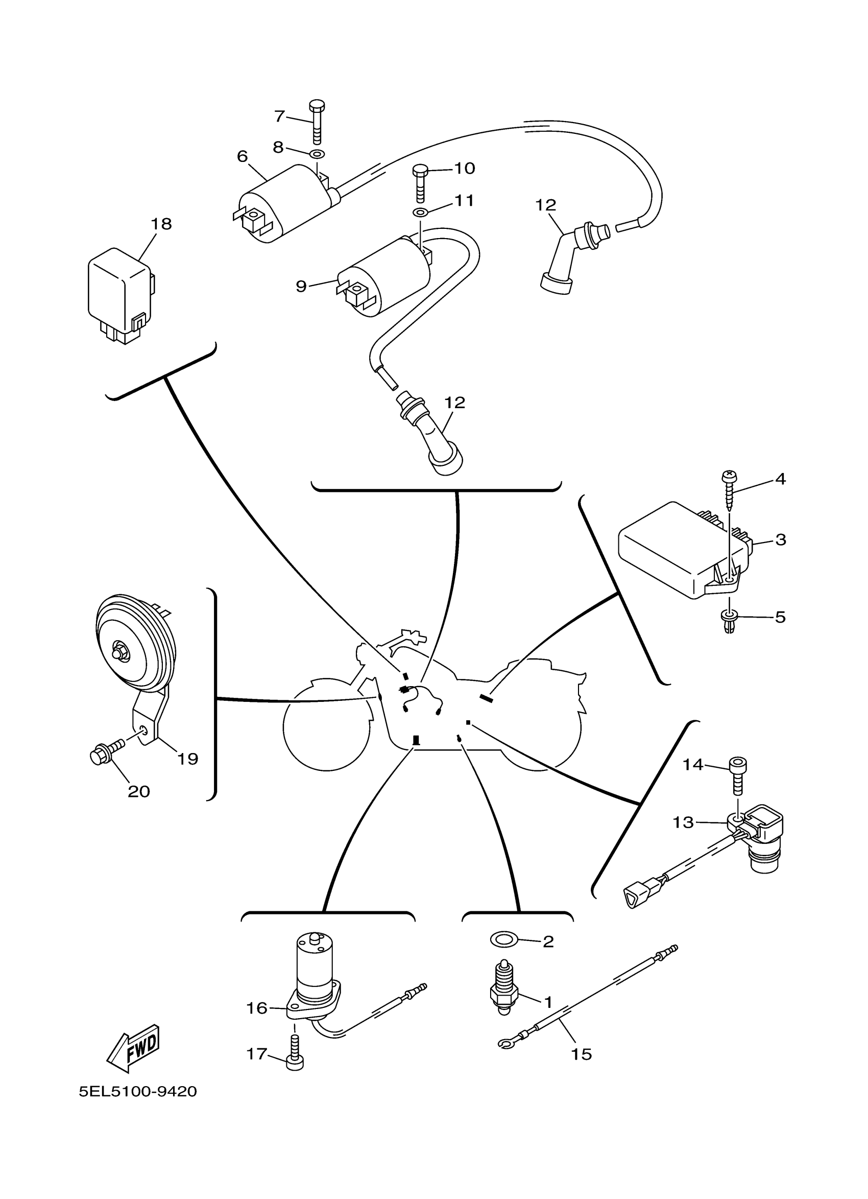 Yamaha XVS1100RC (V-STAR 1100 CUSTOM CA) 5PBE 2003 ELECTRICAL 1 Diagram