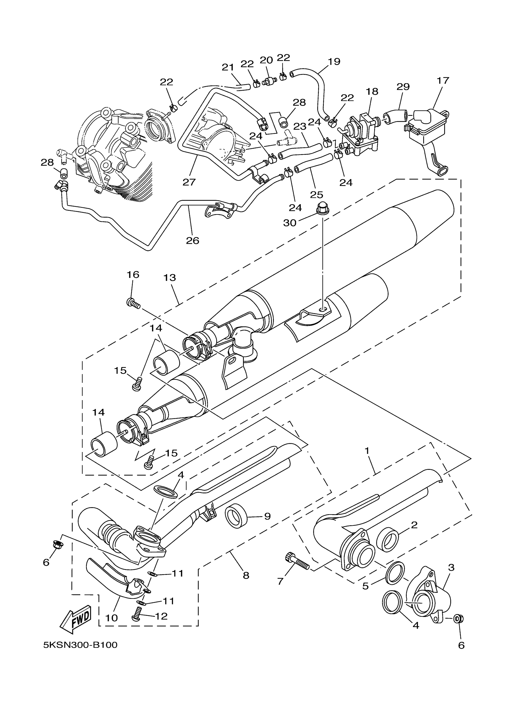 Yamaha XVS11ATWC (V STAR 1100 SILVERADO CA) 5YSY 2007 EXHAUST Diagram