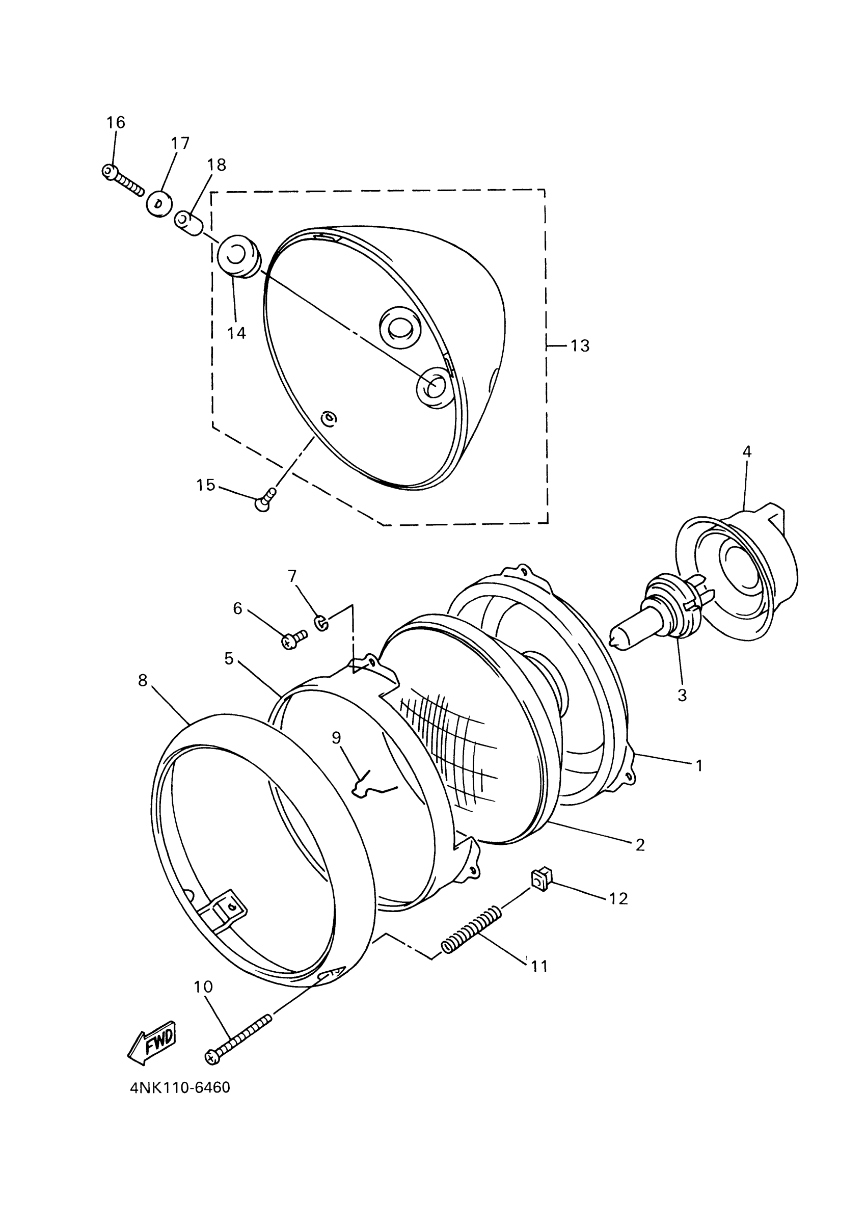 Yamaha XVS11ATXR (V STAR 1100 SILVERADO) 5S020 2008 HEADLIGHT Diagram