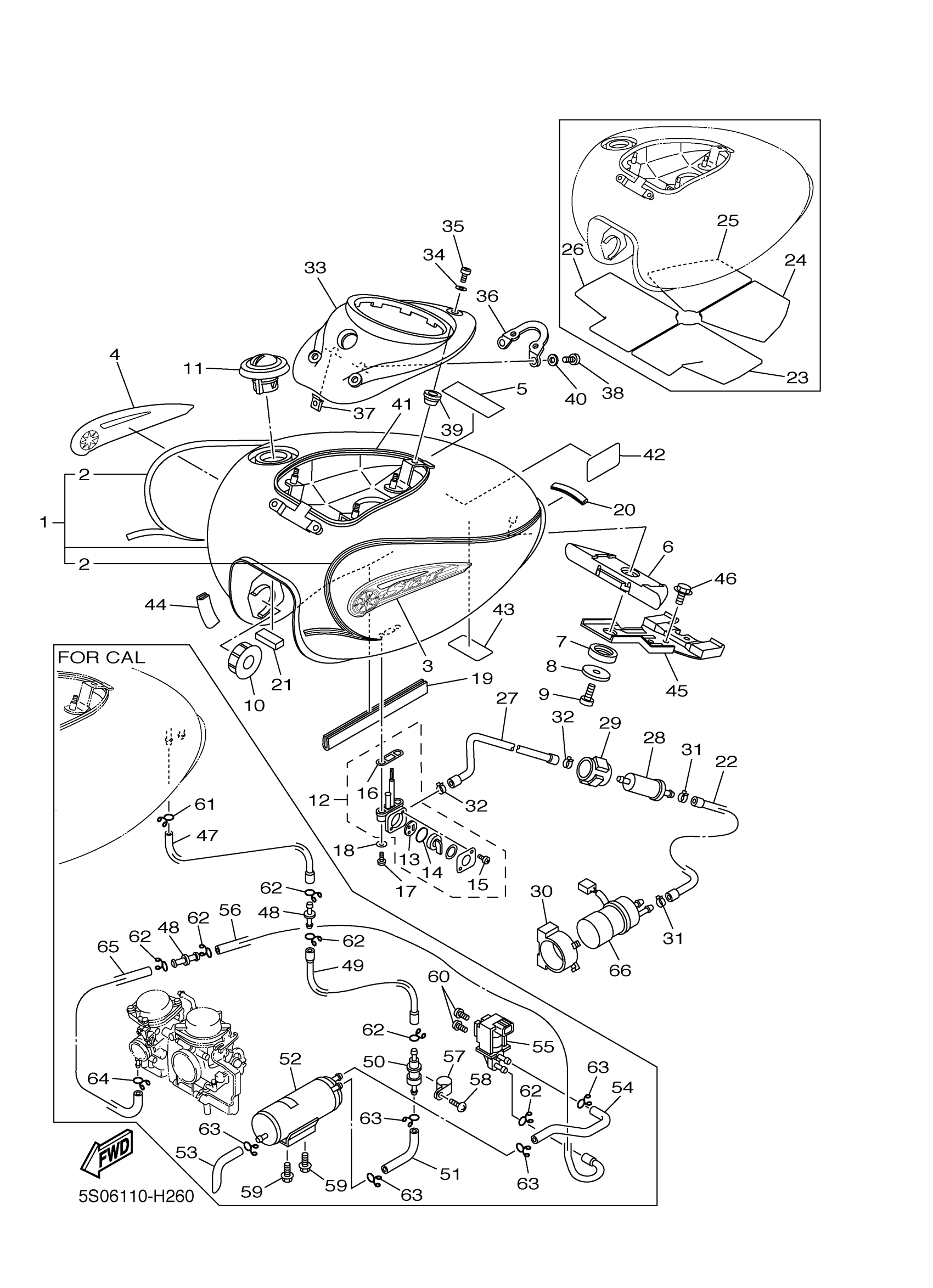 Yamaha XVS11ATYL (V STAR 1100 SILVERADO) 5S060 2009 FUEL TANK Diagram