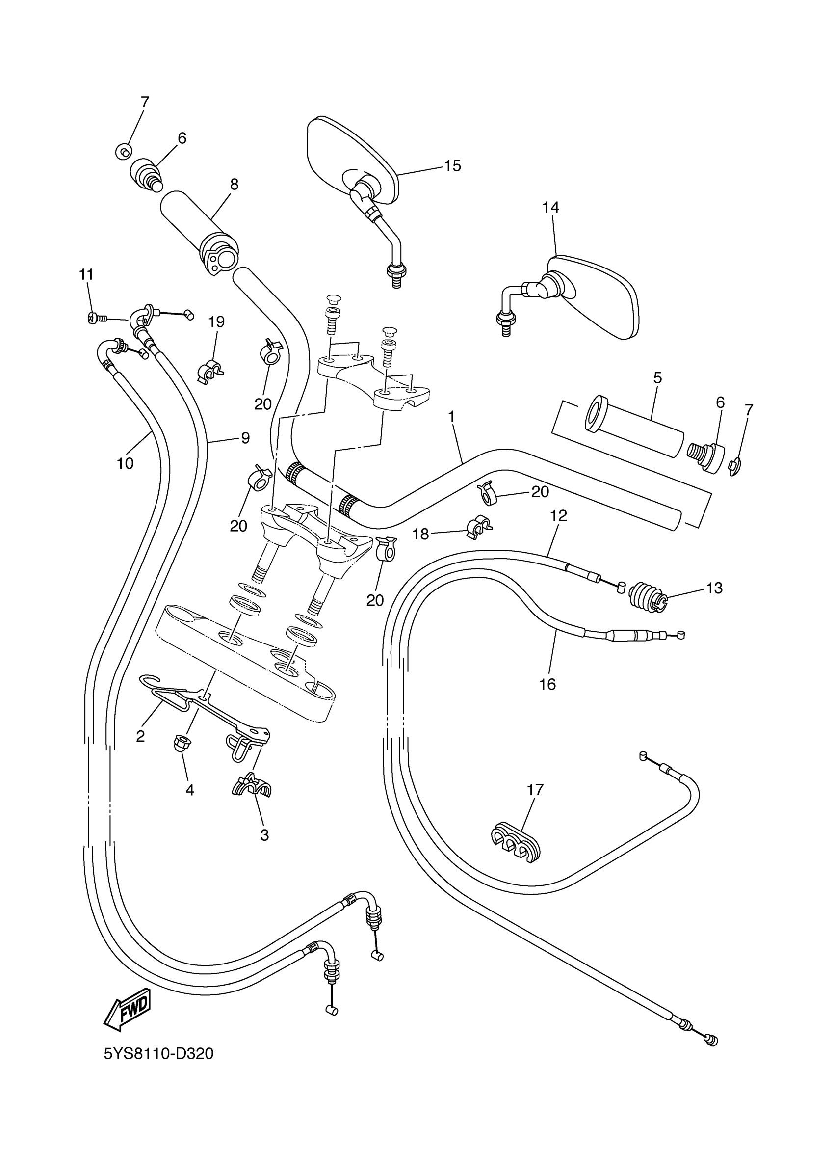 Yamaha XVS11AWTC (V STAR 1100 CLASSIC CA) 5YS9 2005 STEERING HANDLE CABLE Diagram
