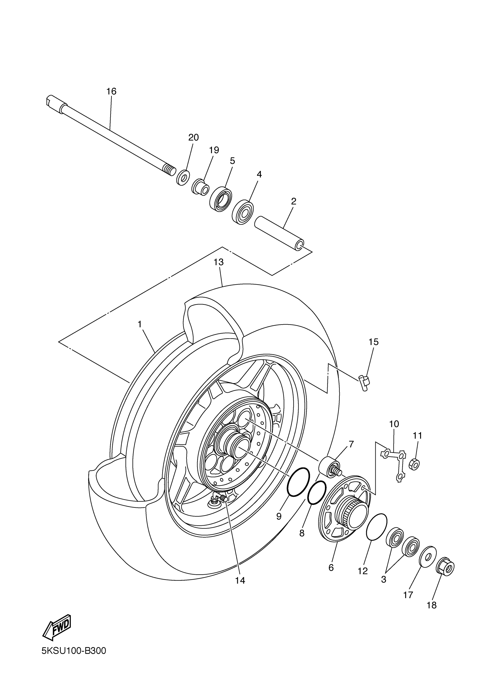Yamaha XVS11AWWC (V STAR 1100 CLASSIC CA) 5YSU 2007 REAR WHEEL Diagram