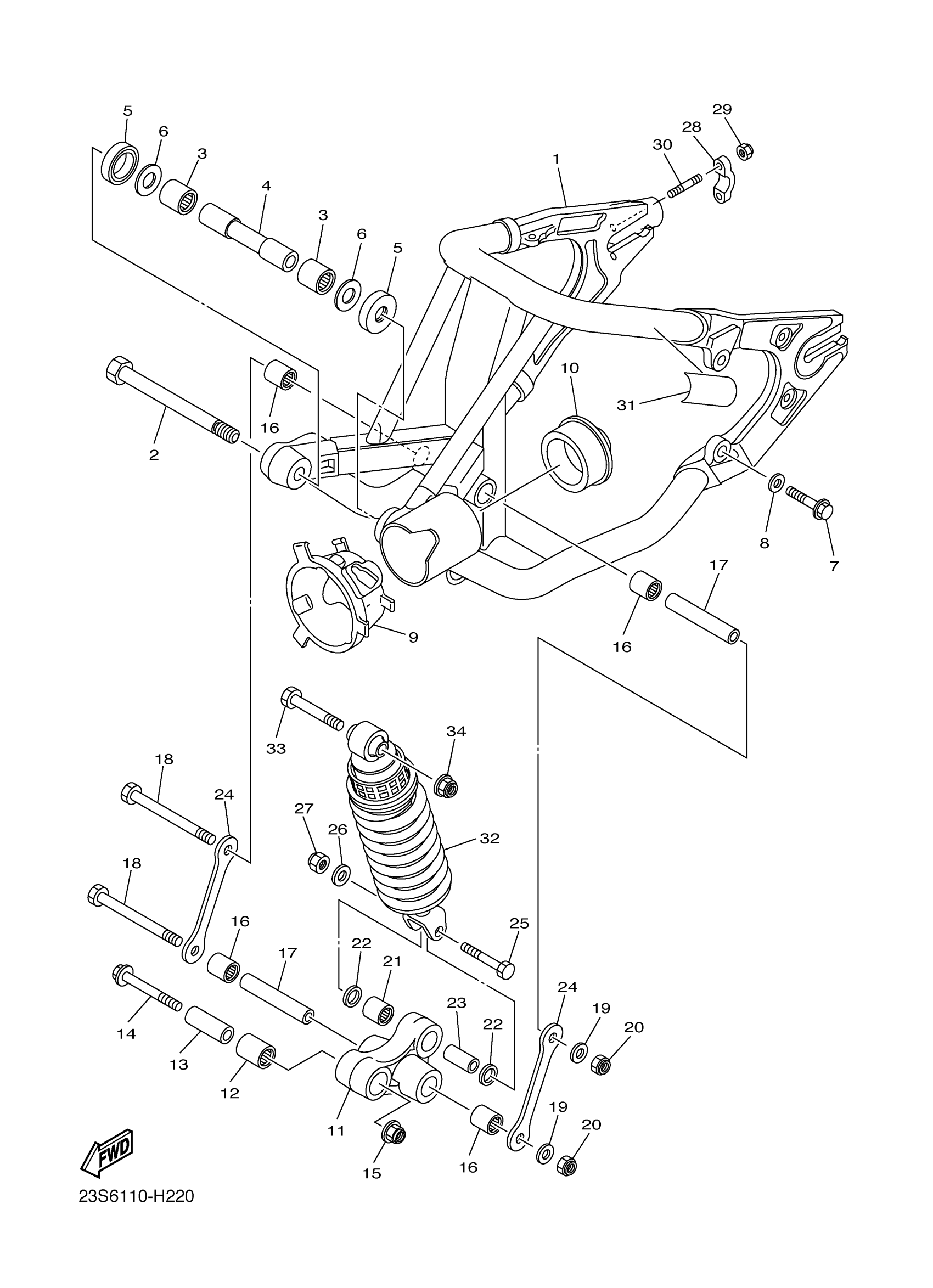 Yamaha XVS11AWYR (V STAR 1100 CLASSIC) 23S60 2009 REAR ARM SUSPENSION Diagram