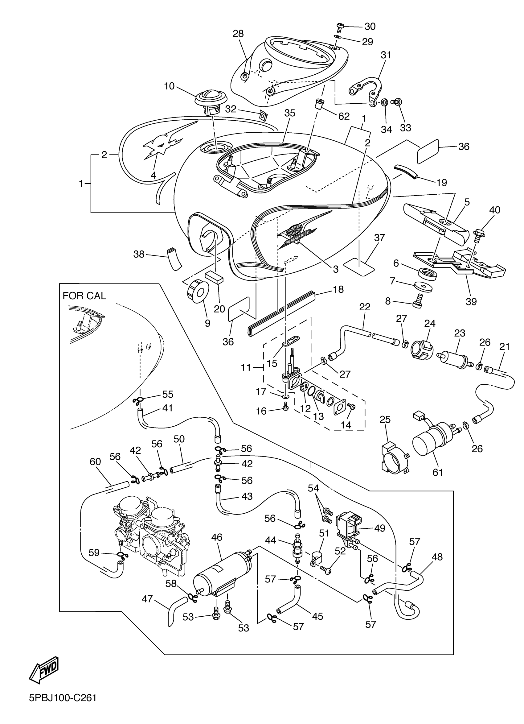 Yamaha XVS11SC (V STAR 1100 CUSTOM CA) 5PBK 2004 FUEL TANK Diagram
