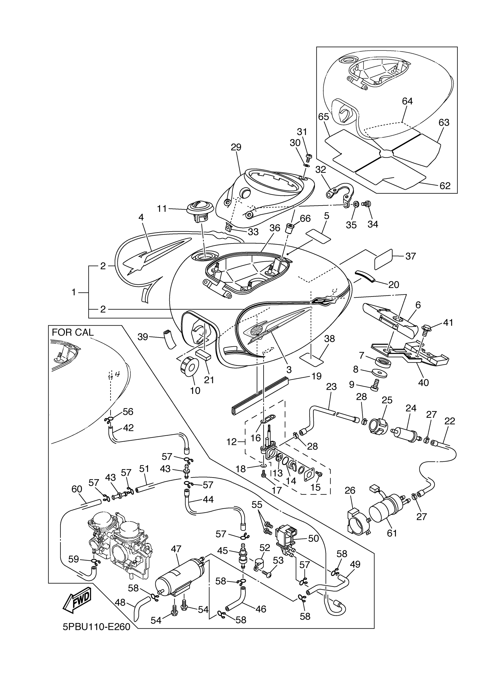 Yamaha XVS11VC (V STAR 1100 MIDNIGHT CUSTOM CA) 5PBV 2006 FUEL TANK Diagram