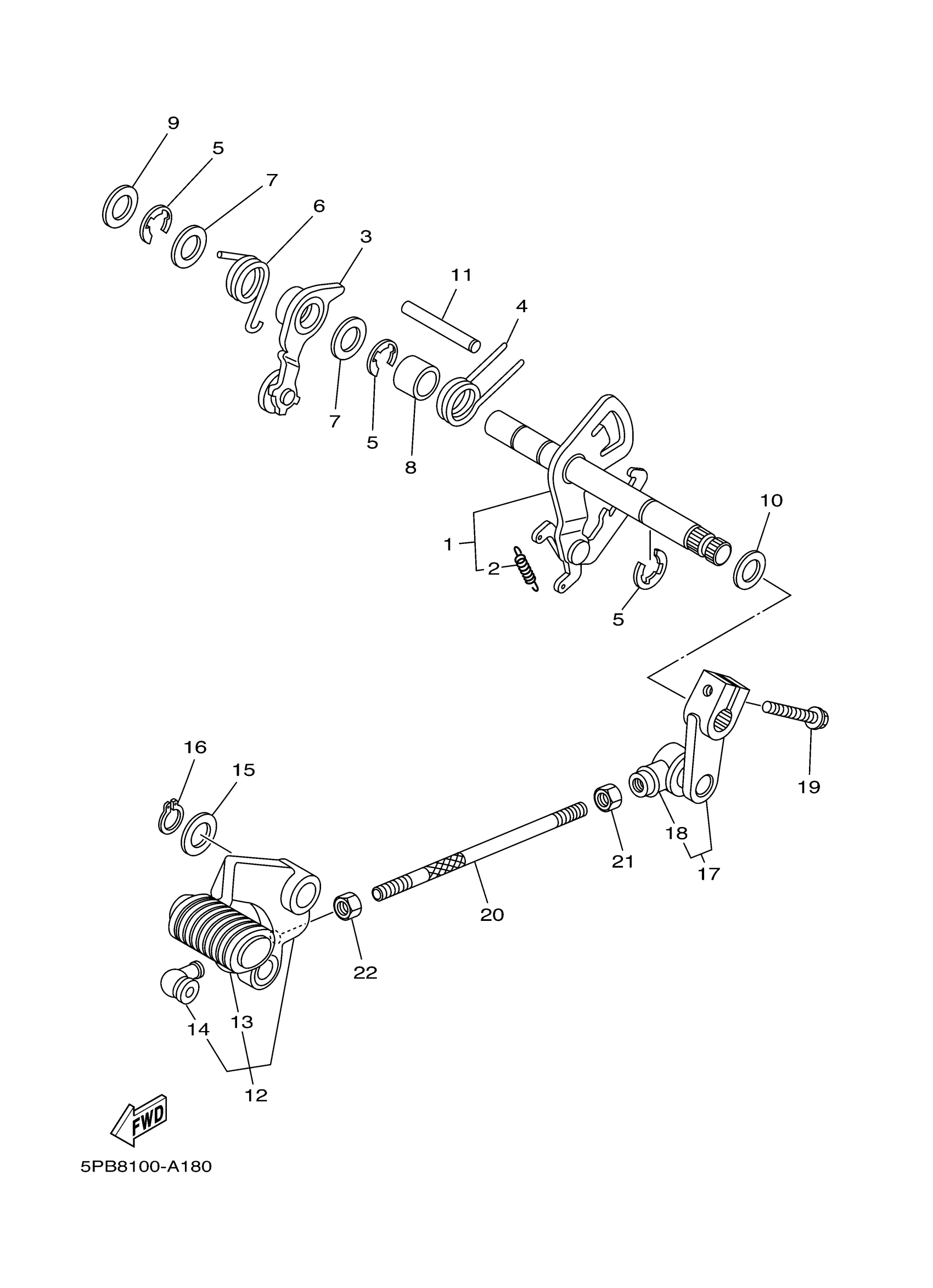 Yamaha XVS11VC (V STAR 1100 MIDNIGHT CUSTOM CA) 5PBV 2006 SHIFT SHAFT Diagram