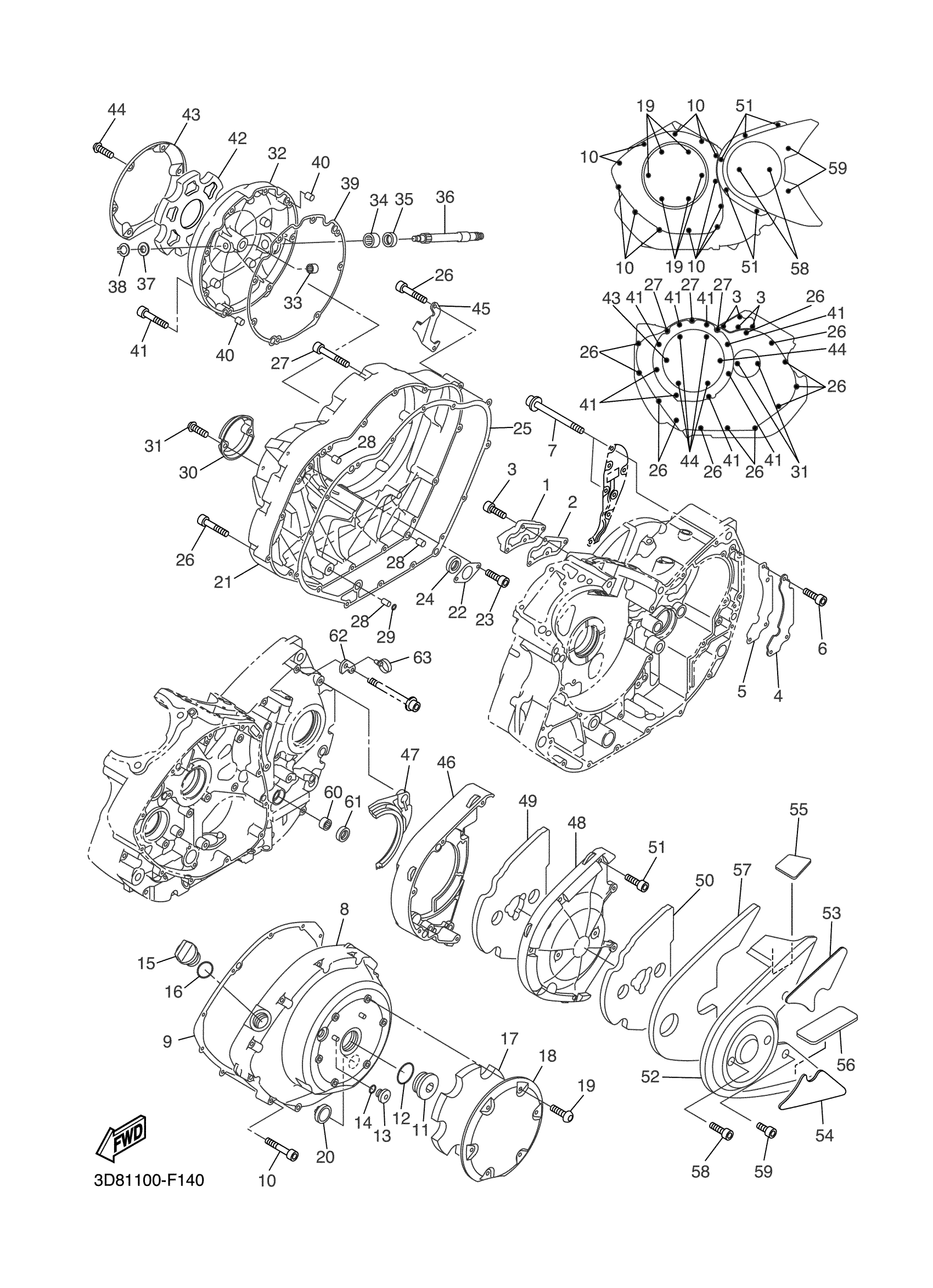 Yamaha XVS13AWC (V STAR 1300 CA) 3D82 2007 CRANKCASE COVER 1 Diagram