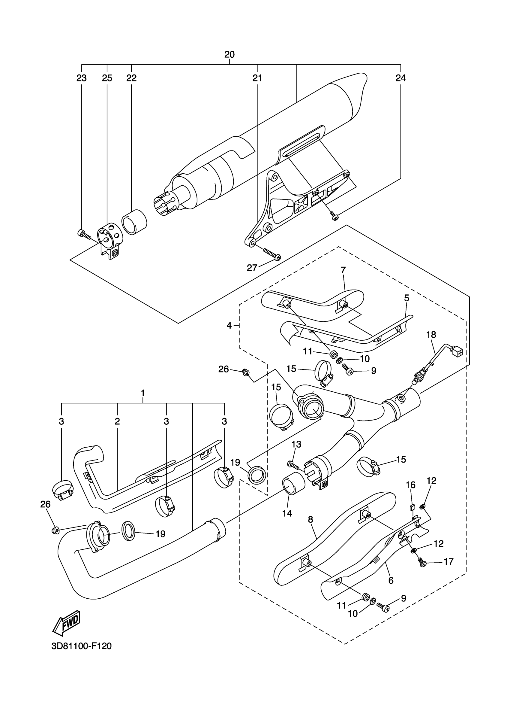 Yamaha XVS13AYW (V STAR 1300) 3D870 2009 EXHAUST Diagram