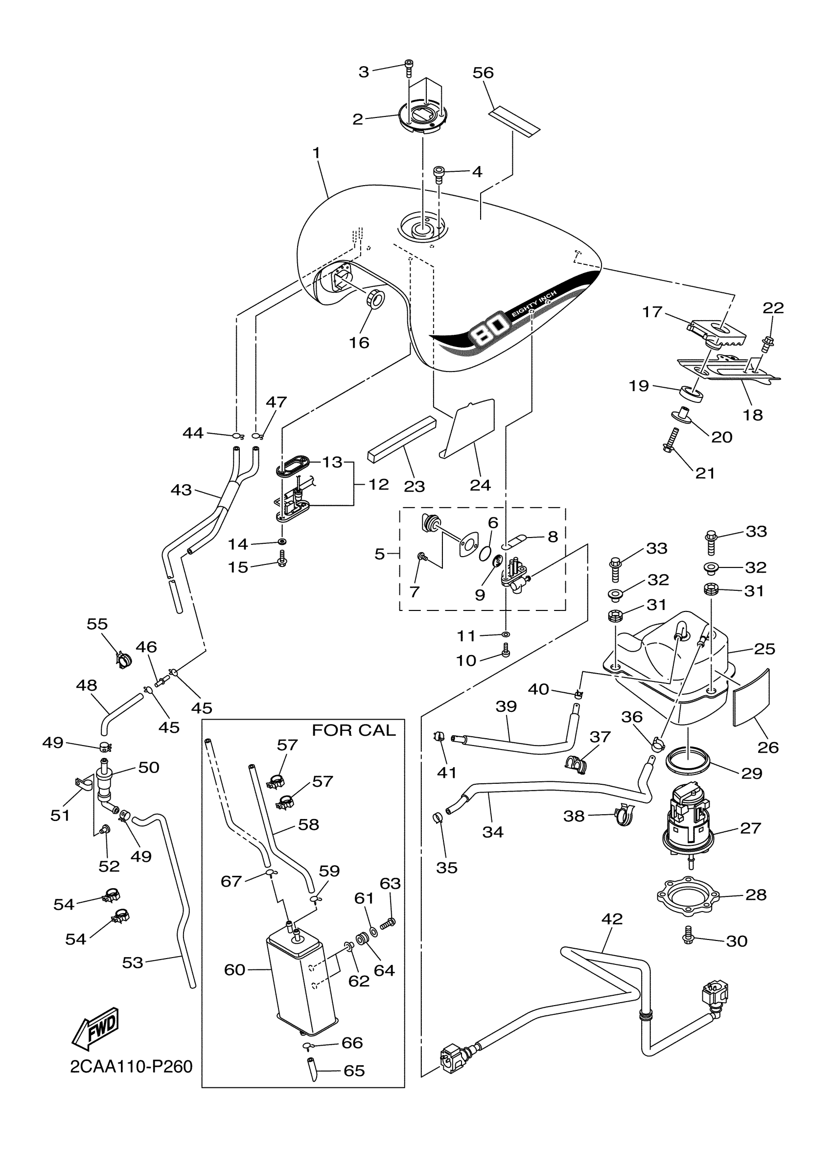 Yamaha XVS13BGFR (V STAR 1300 DELUXE) 2CAA 2015 FUEL TANK Diagram