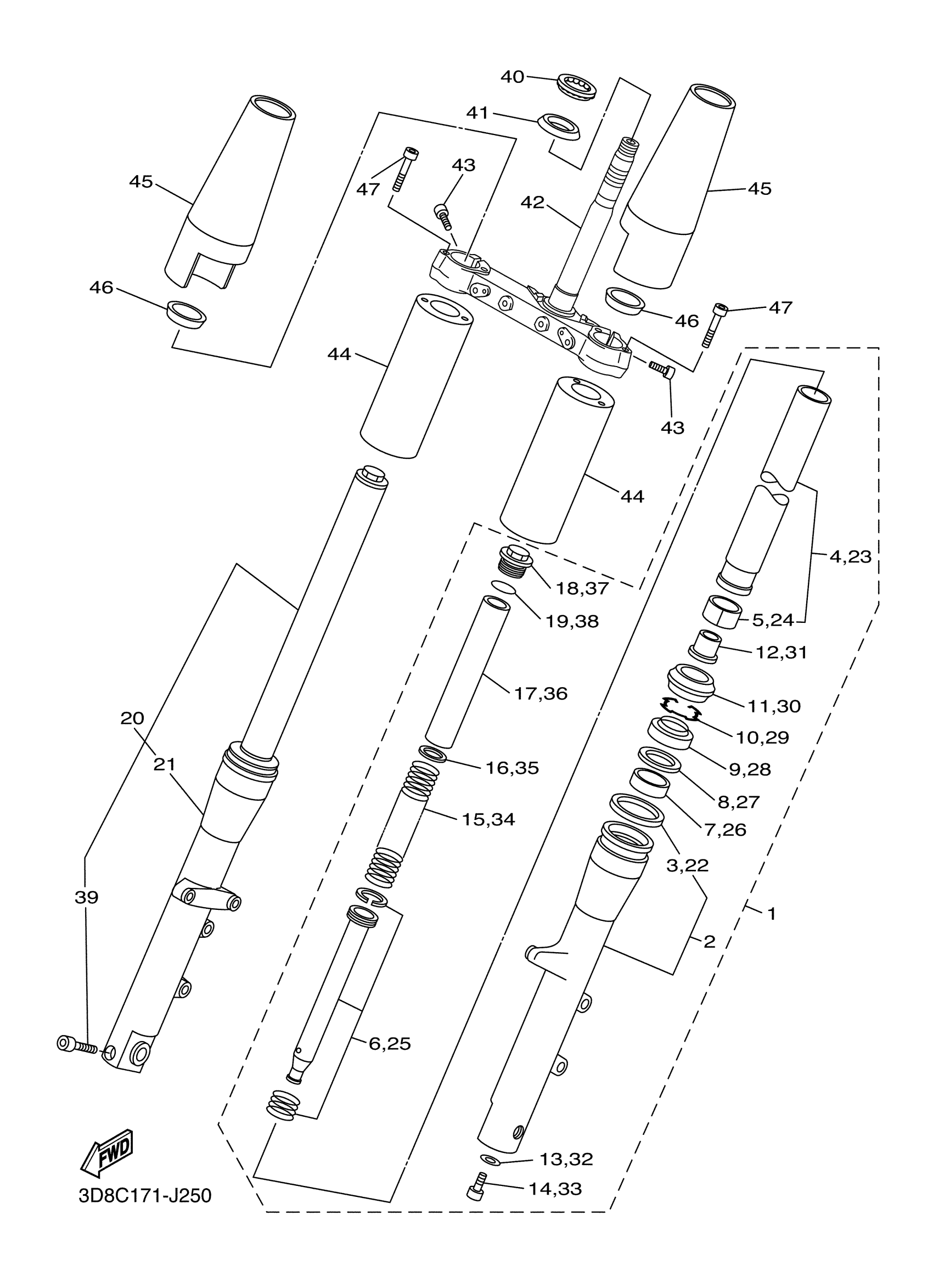Yamaha XVS13BGHCB (V STAR 1300 DELUXE CA) 2CAL 2017 FRONT FORK Diagram
