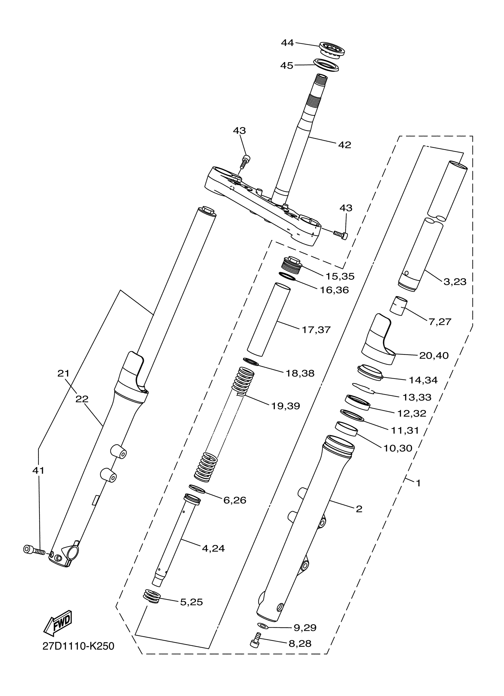Yamaha XVS13CDR (STRYKER) 1GP70 2013 FRONT FORK Diagram