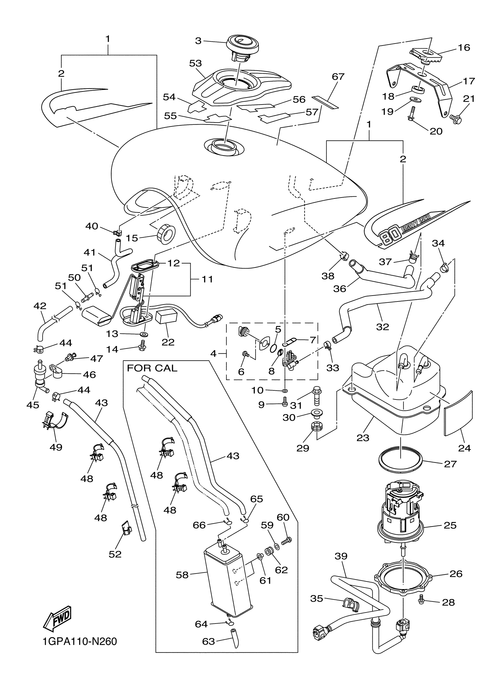 Yamaha XVS13CEGY (STRYKER) 1GPA 2014 FUEL TANK Diagram