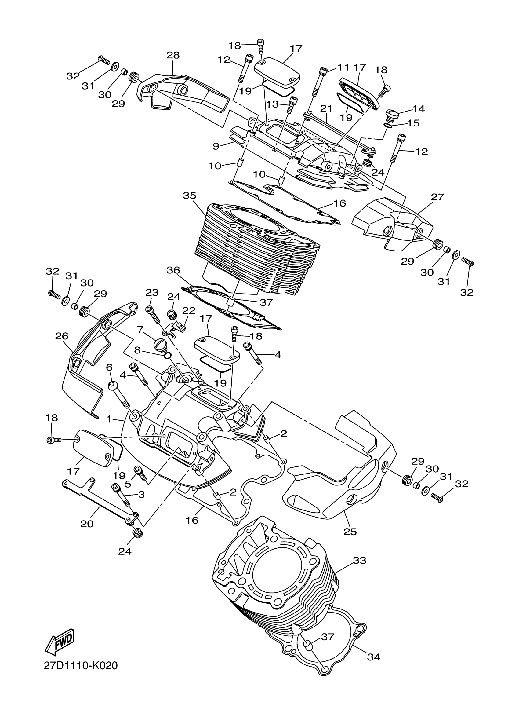 Yamaha XVS13CFR (STRYKER) 27DD 2015 CYLINDER Diagram