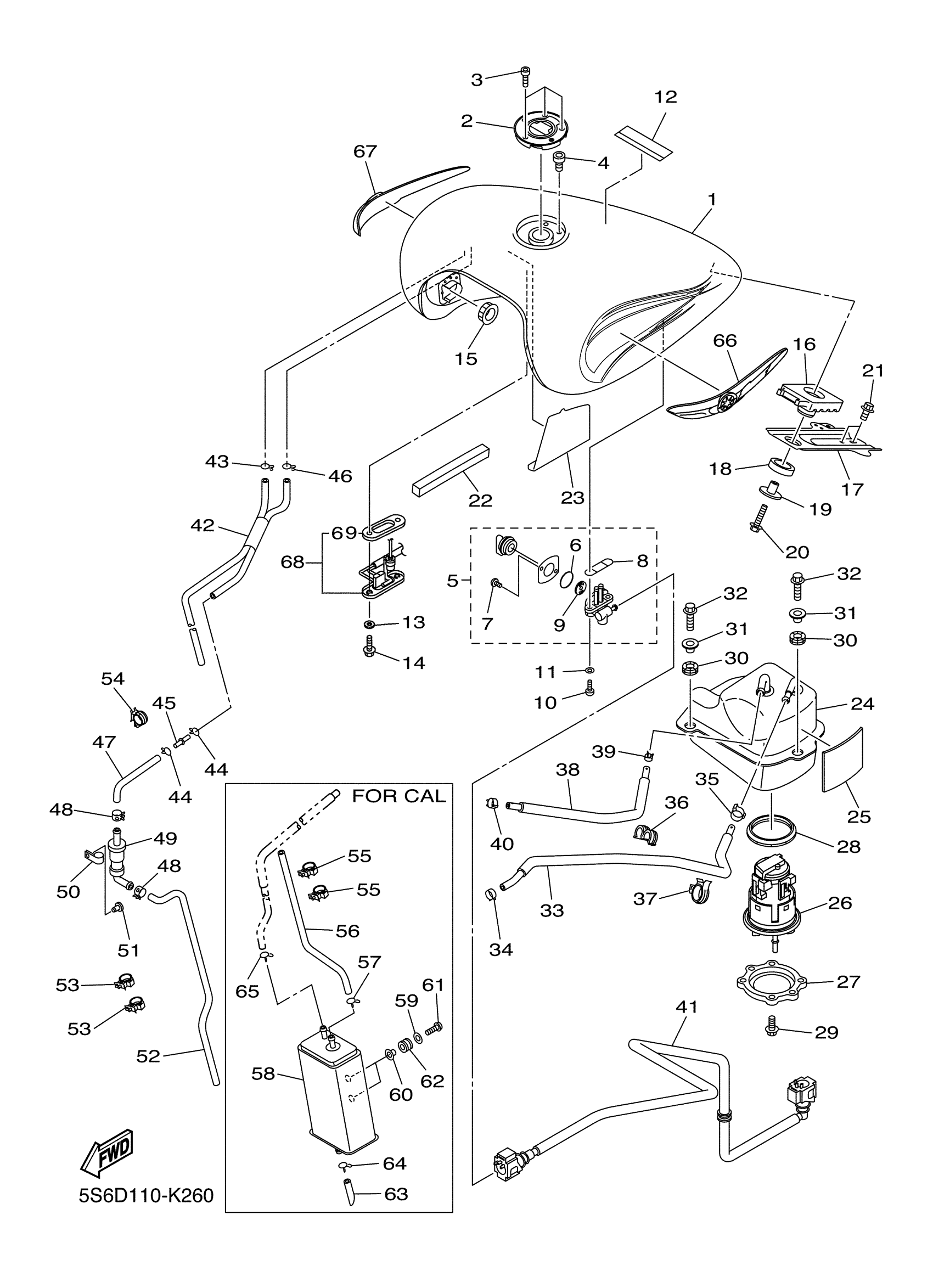 Yamaha XVS13CTAR (V STAR 1300 TOURER) 5S6D 2011 FUEL TANK Diagram