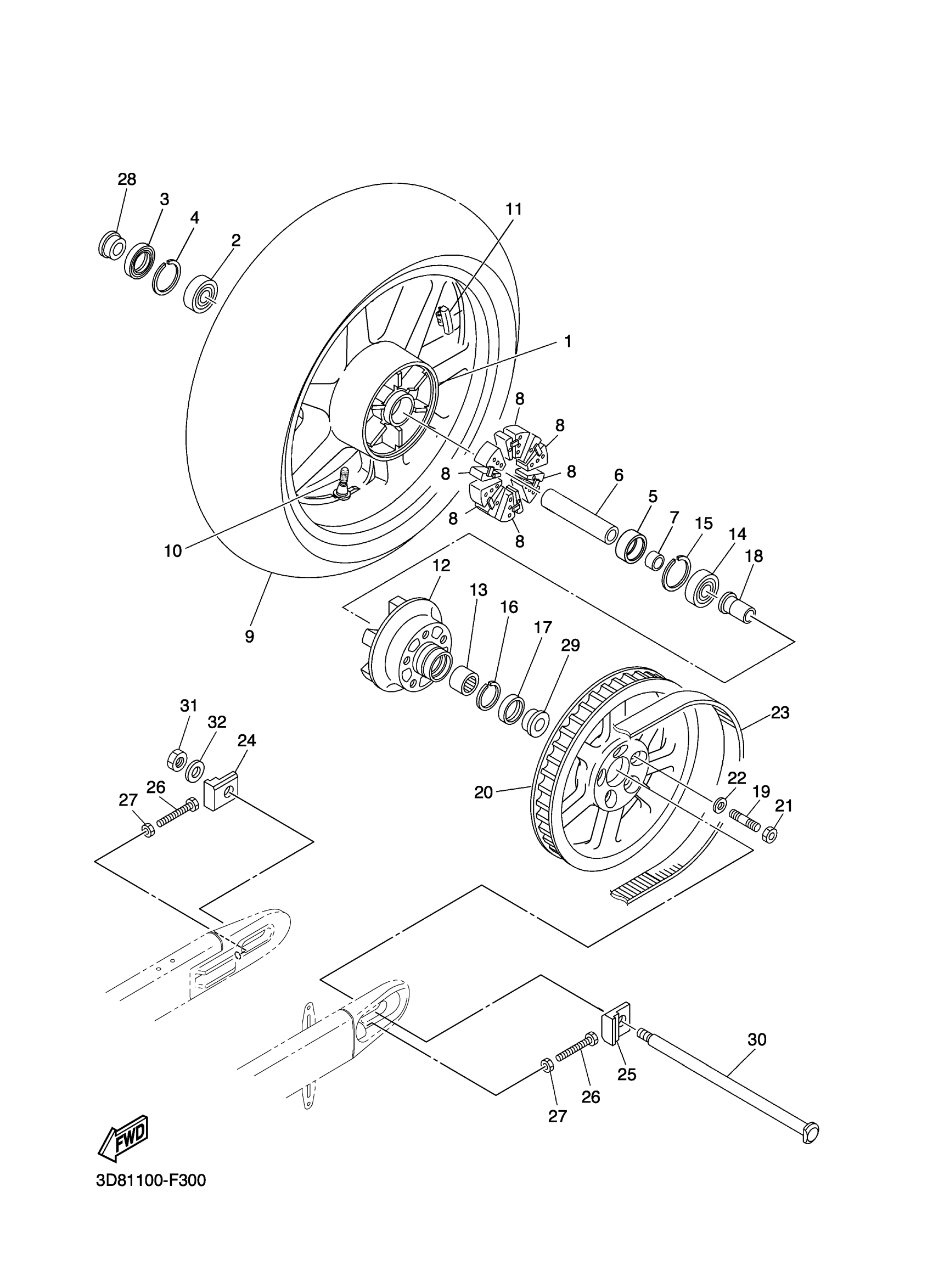 Yamaha XVS13CTBL (V STAR 1300 TOURER) 5S6G0 2012 REAR WHEEL Diagram