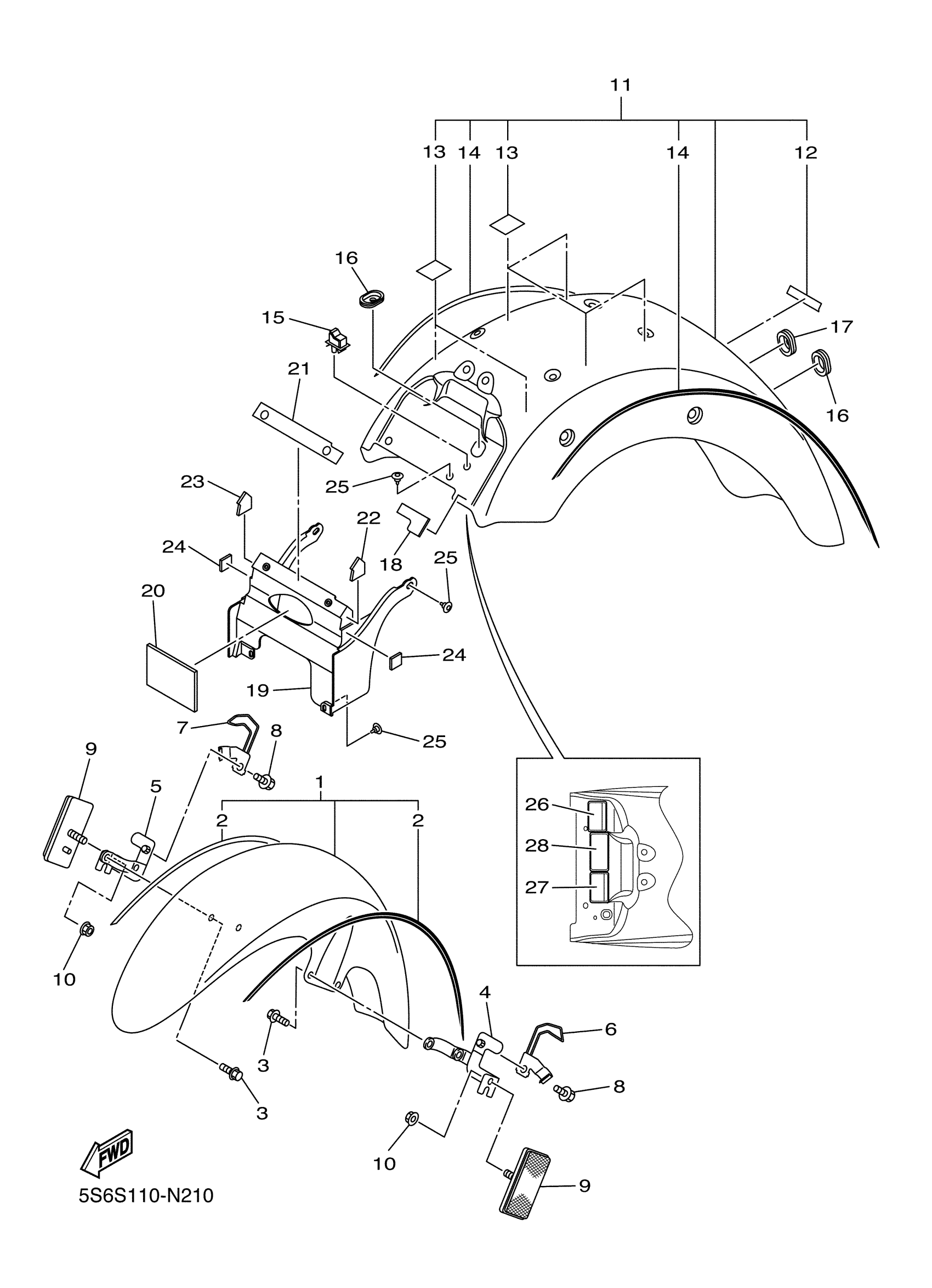 Yamaha XVS13CTECB (V STAR 1300 TOURER CA) 5S6T 2014 FENDER Diagram