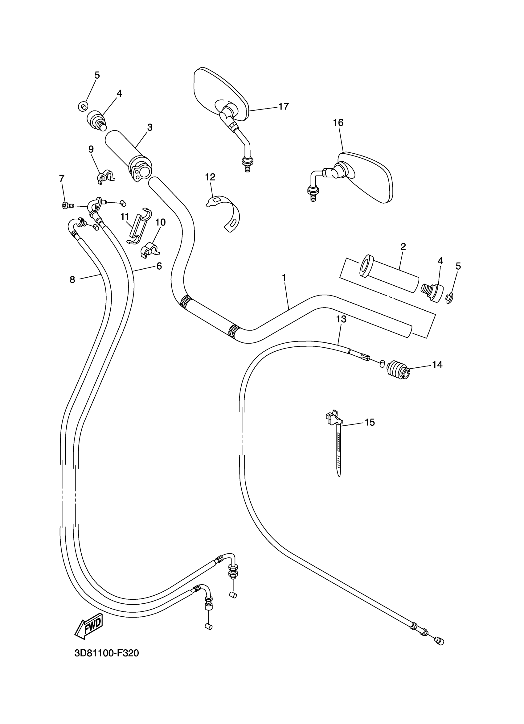 Yamaha XVS13CTWC (V STAR 1300 TOURER CA) 5S62 2007 STEERING HANDLE CABLE Diagram
