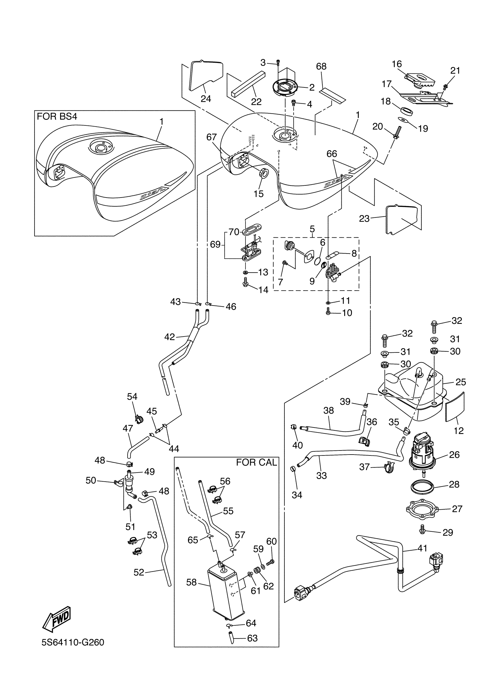 Yamaha XVS13CTXS (V STAR 1300 TOURER) 5S641 2008 FUEL TANK Diagram