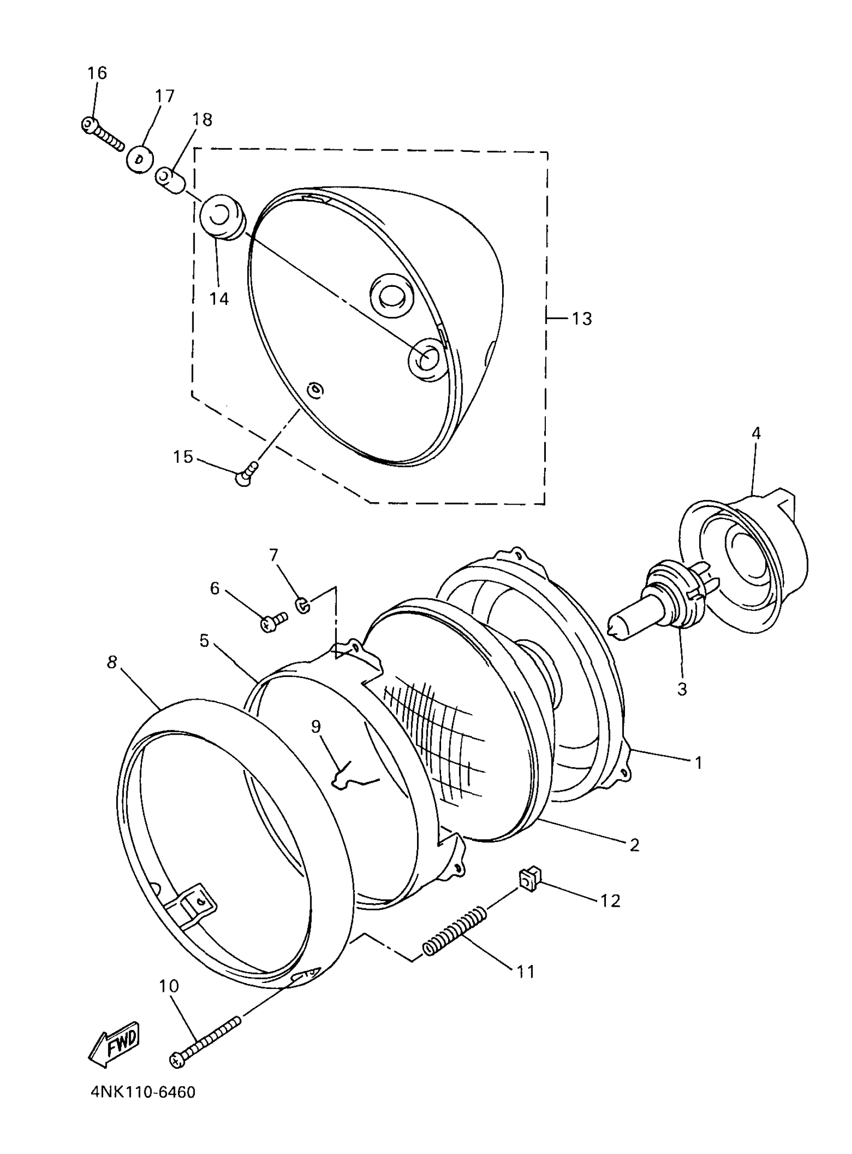 Yamaha XVS650AKC (V-STAR CLASSIC CA) 5BN2 1998 HEADLIGHT Diagram