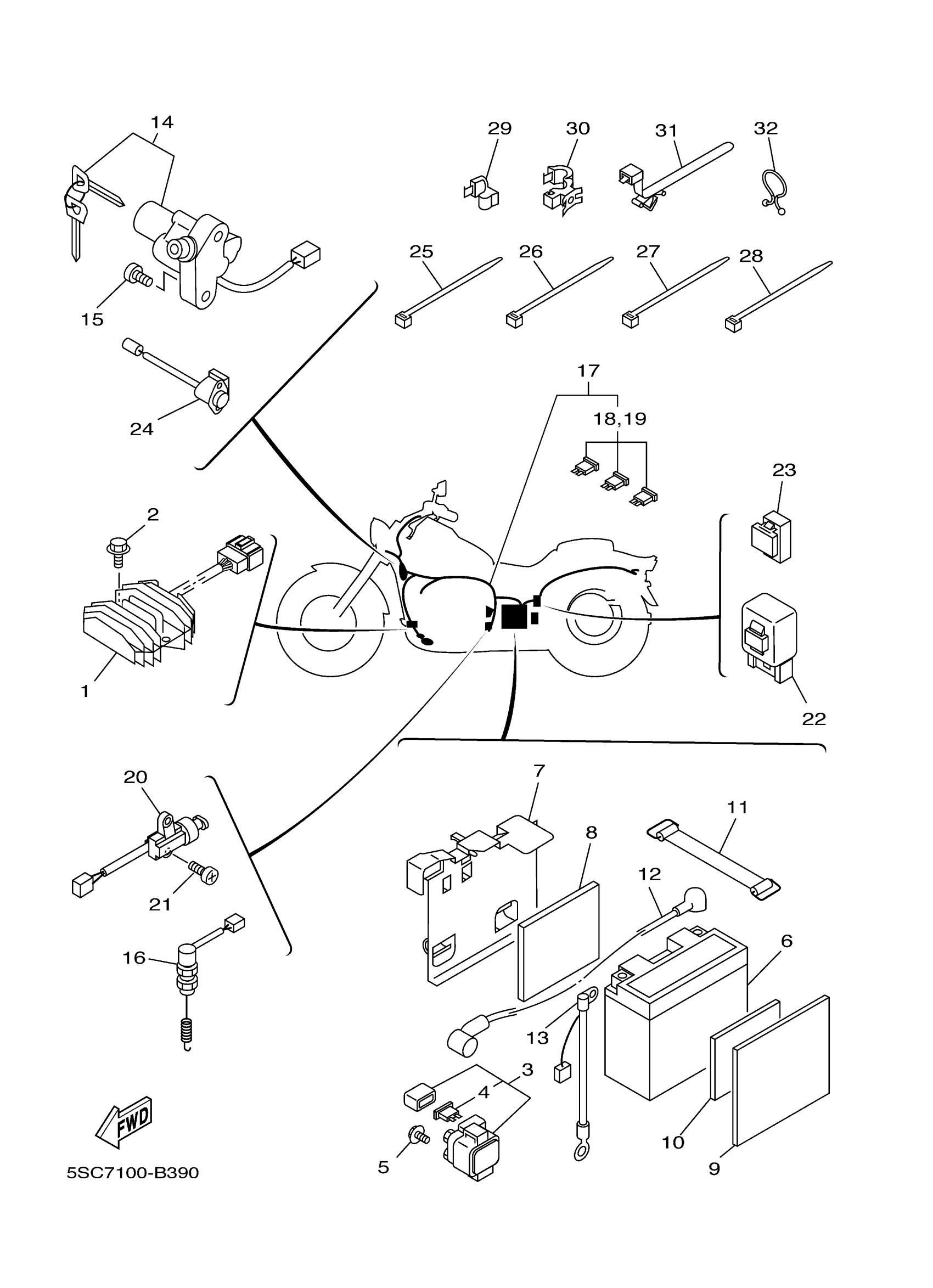 Yamaha XVS650ARC (V-STAR CLASSIC CA) 5SC8 2003 ELECTRICAL 1 Diagram