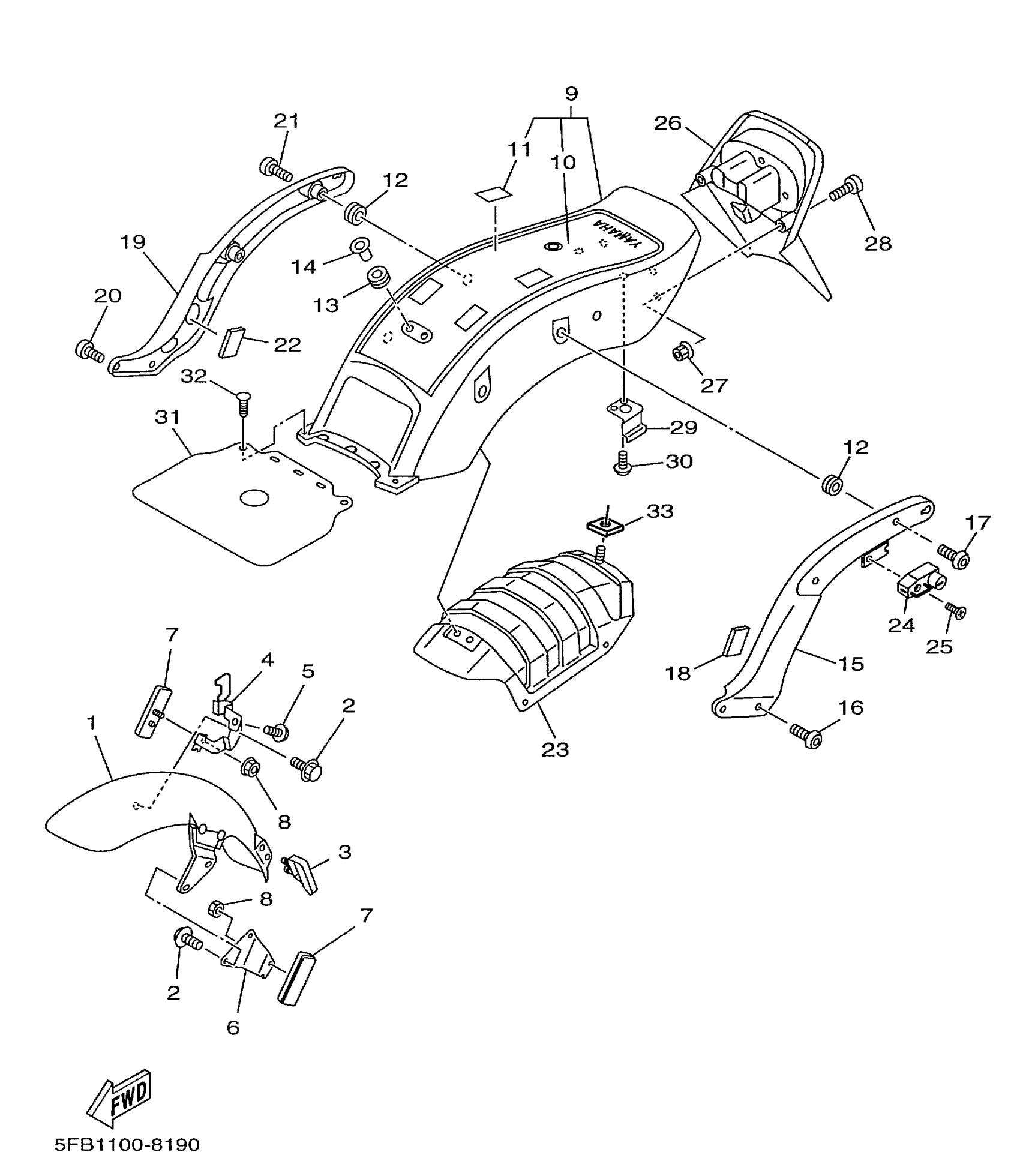 REAR FENDER C0MP. (YAMAHA BLACK)