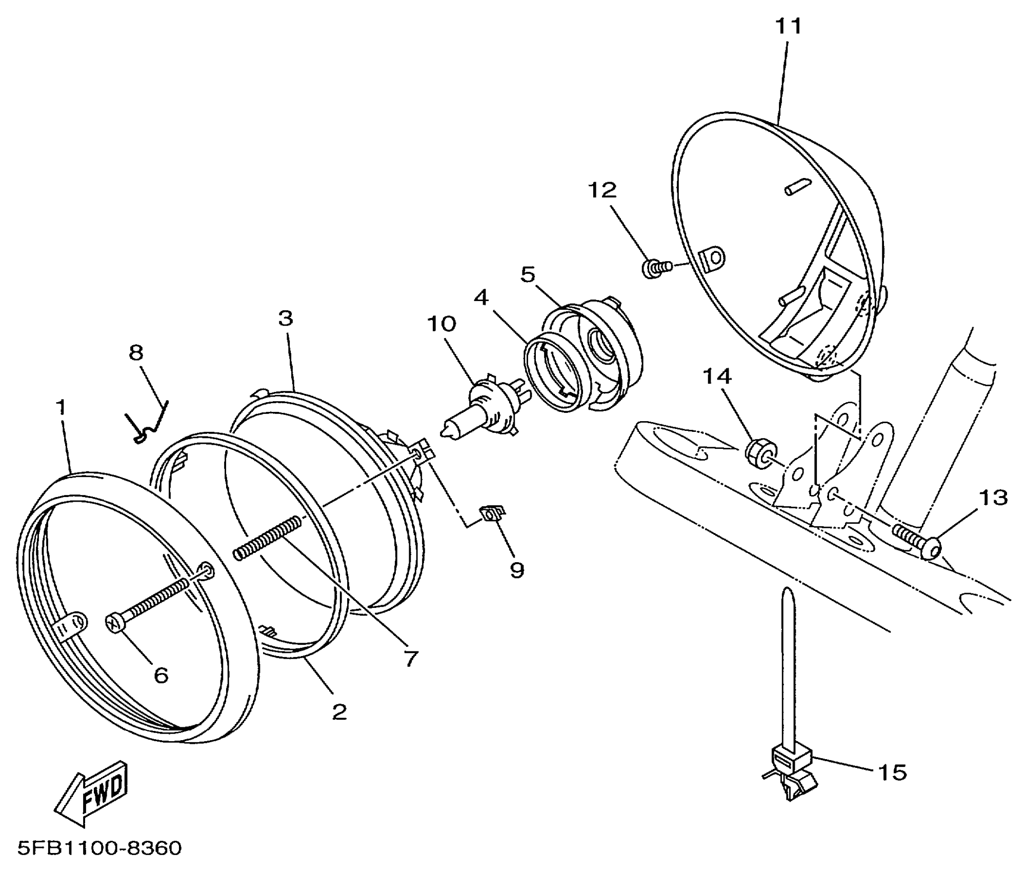 Yamaha XVS650KC (V-STAR CUSTOM CA) 5FB2C 1998 HEADLIGHT Diagram