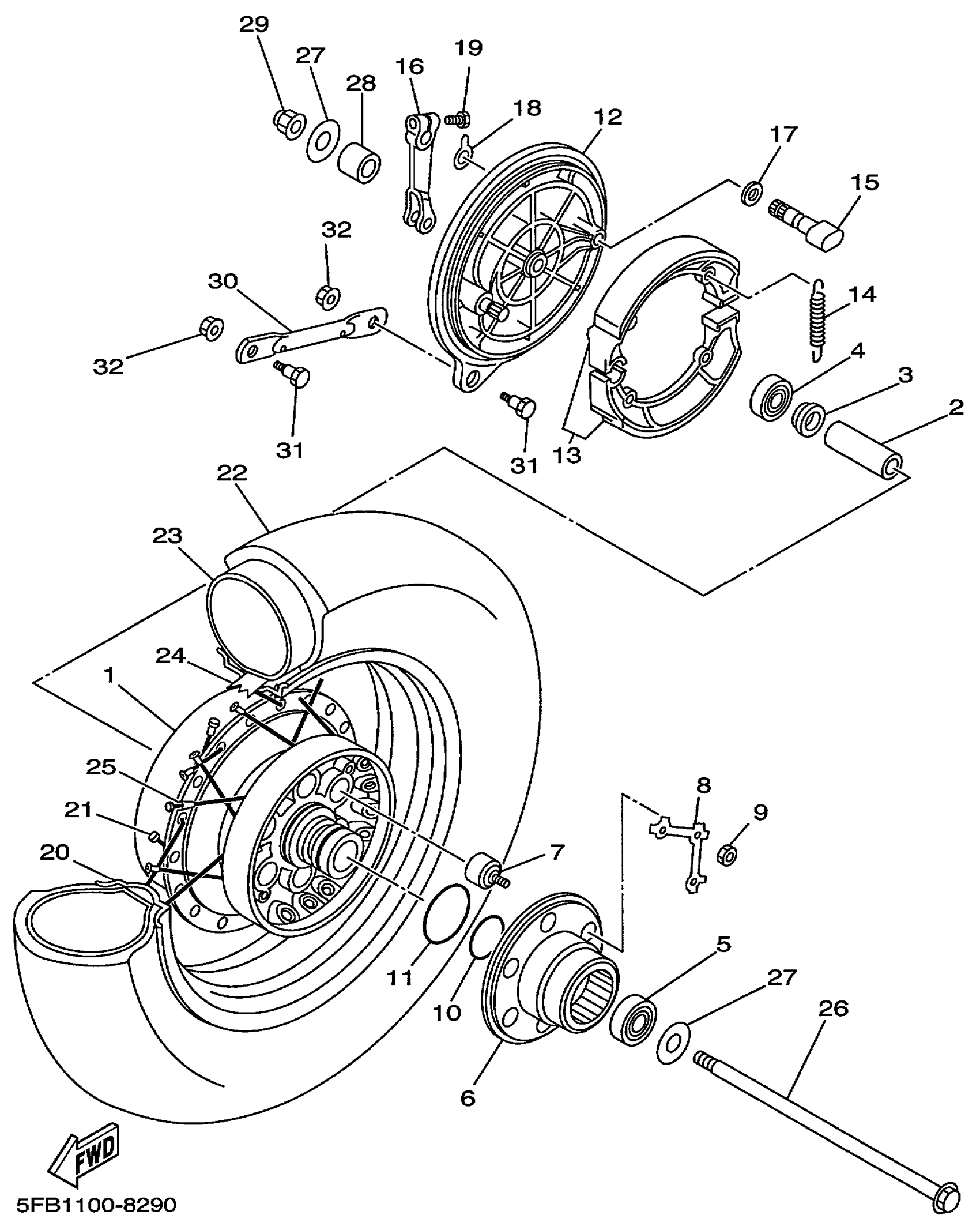 Yamaha XVS650LC (V-STAR CUSTOM CA) 5FB8 1999 REAR WHEEL Diagram