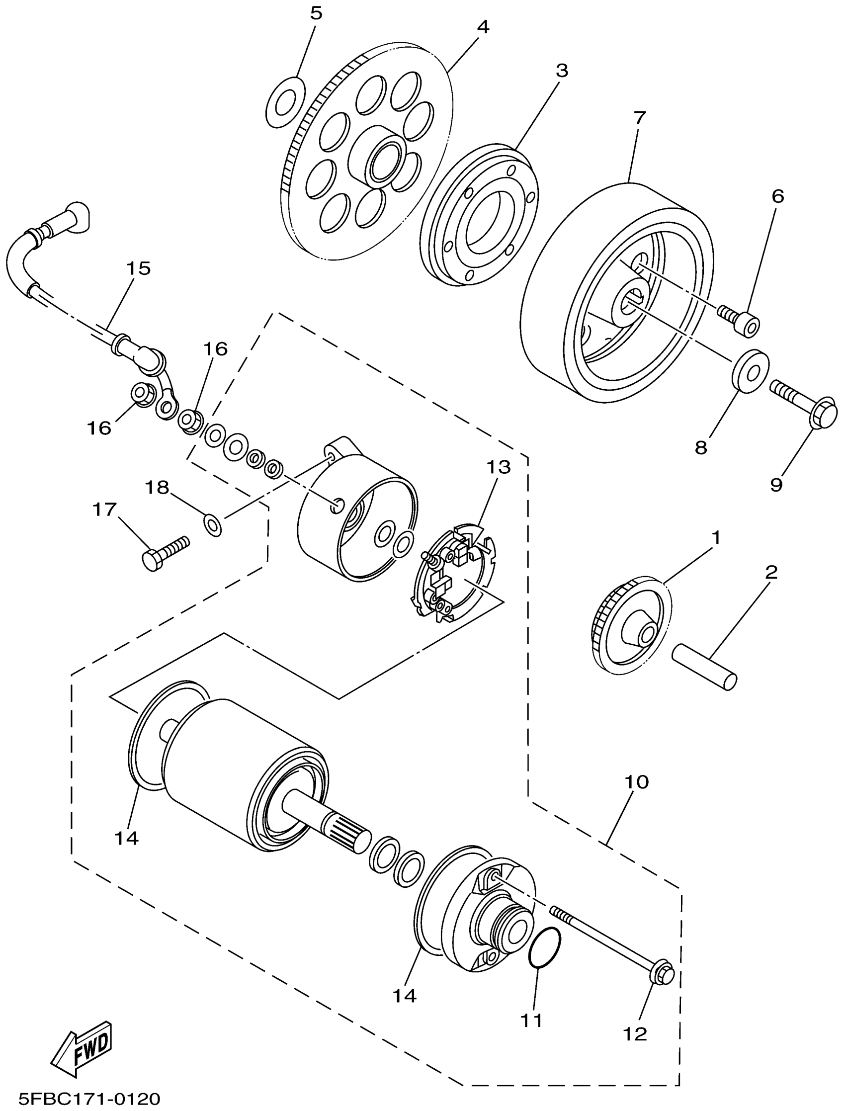 Yamaha XVS650NC (V-STAR CUSTOM CA) 5FBE 2001 STARTER CLUTCH Diagram