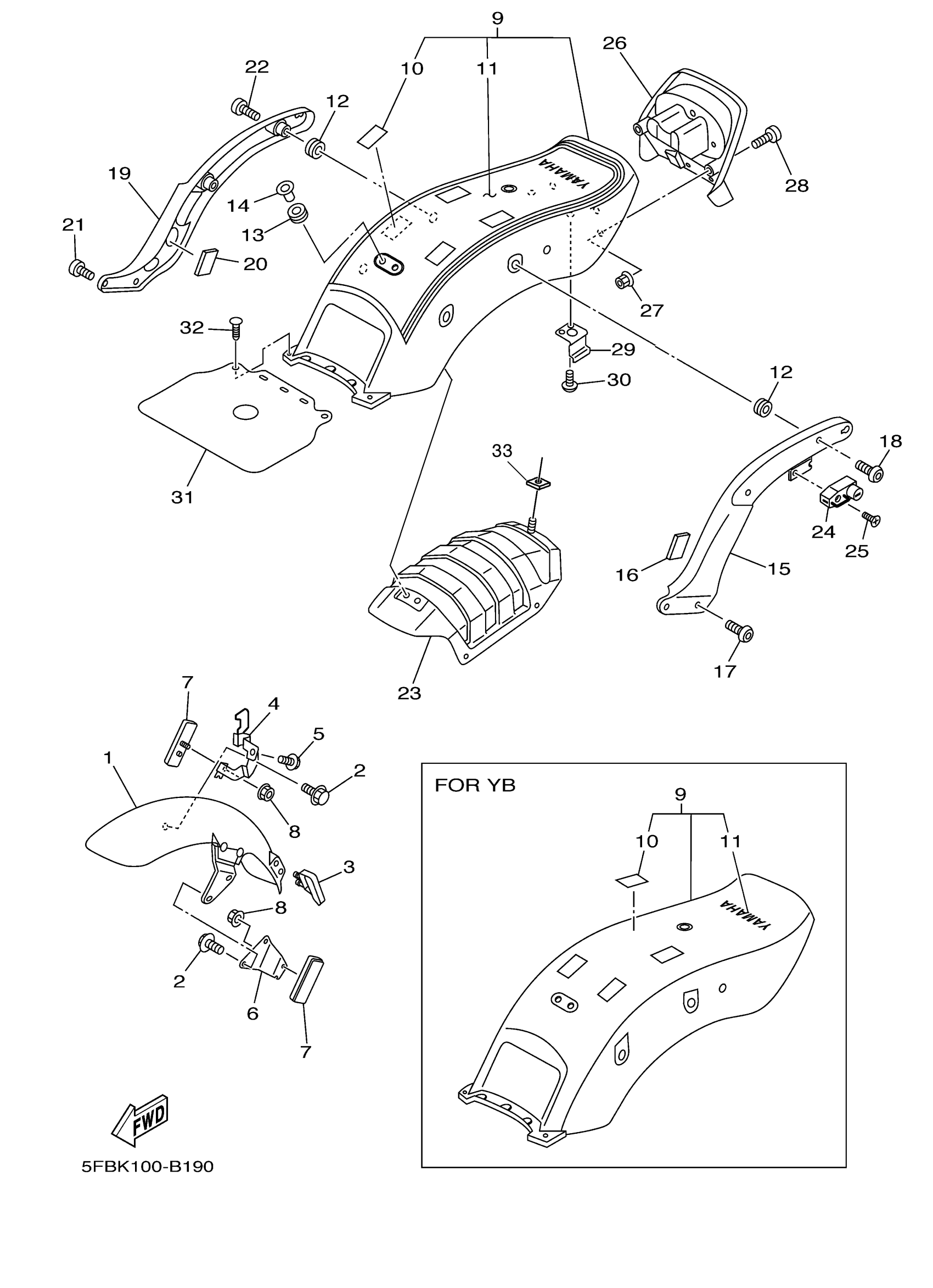 REAR FENDER COMP. (YAMAHA BLACK)