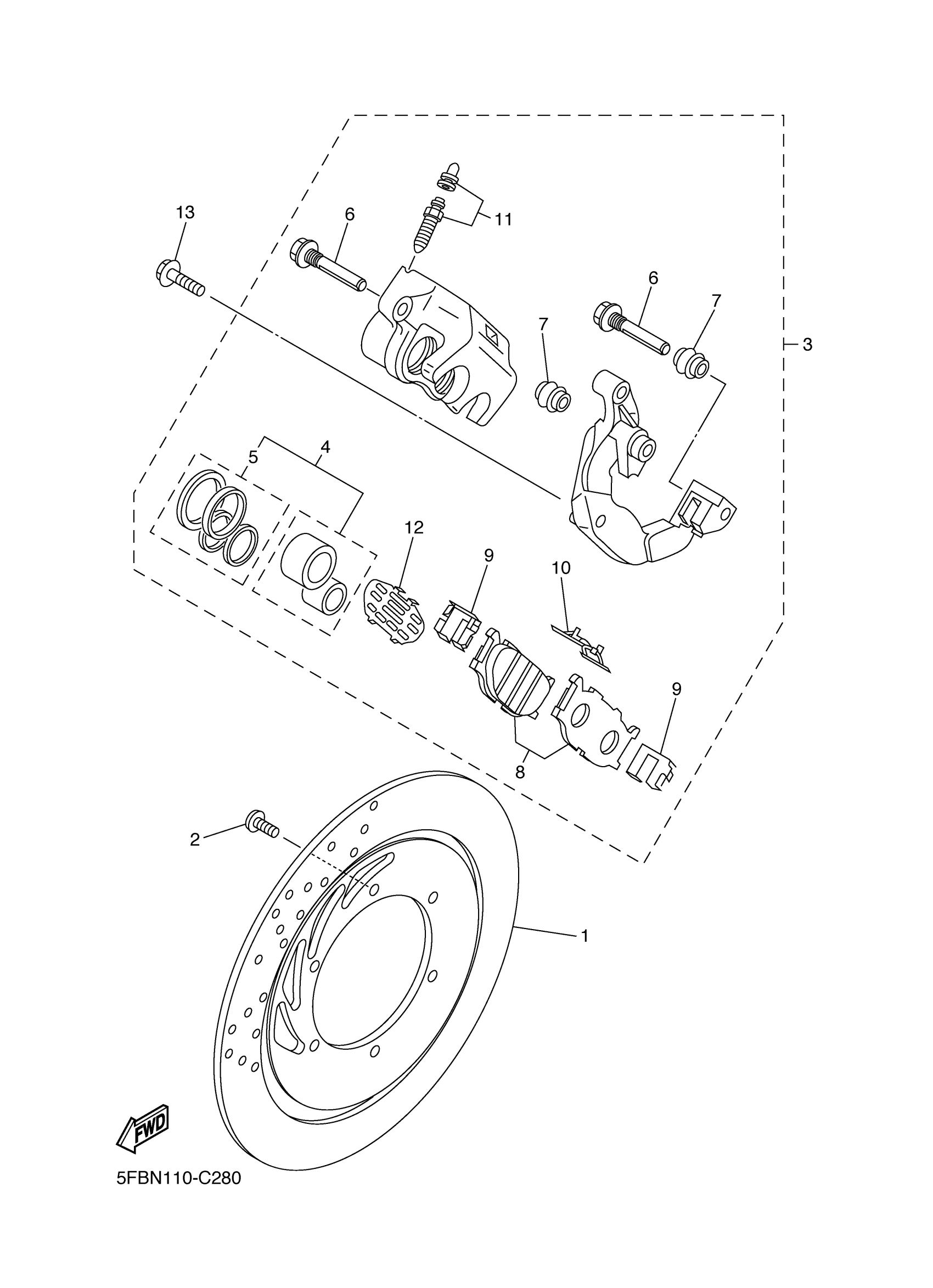 Yamaha XVS65ATZCB (V STAR 650 SILVERADO CA) 1BG2 2010 FRONT BRAKE CALIPER Diagram