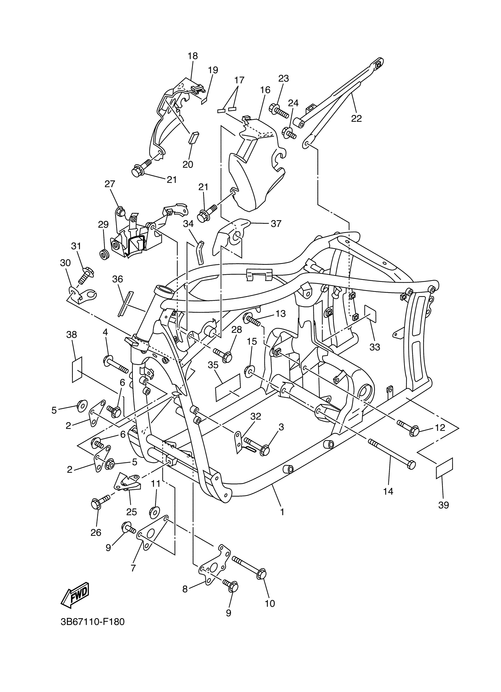 Yamaha XVS65WC (V STAR 650 CUSTOM CA) 3B68 2007 FRAME Diagram