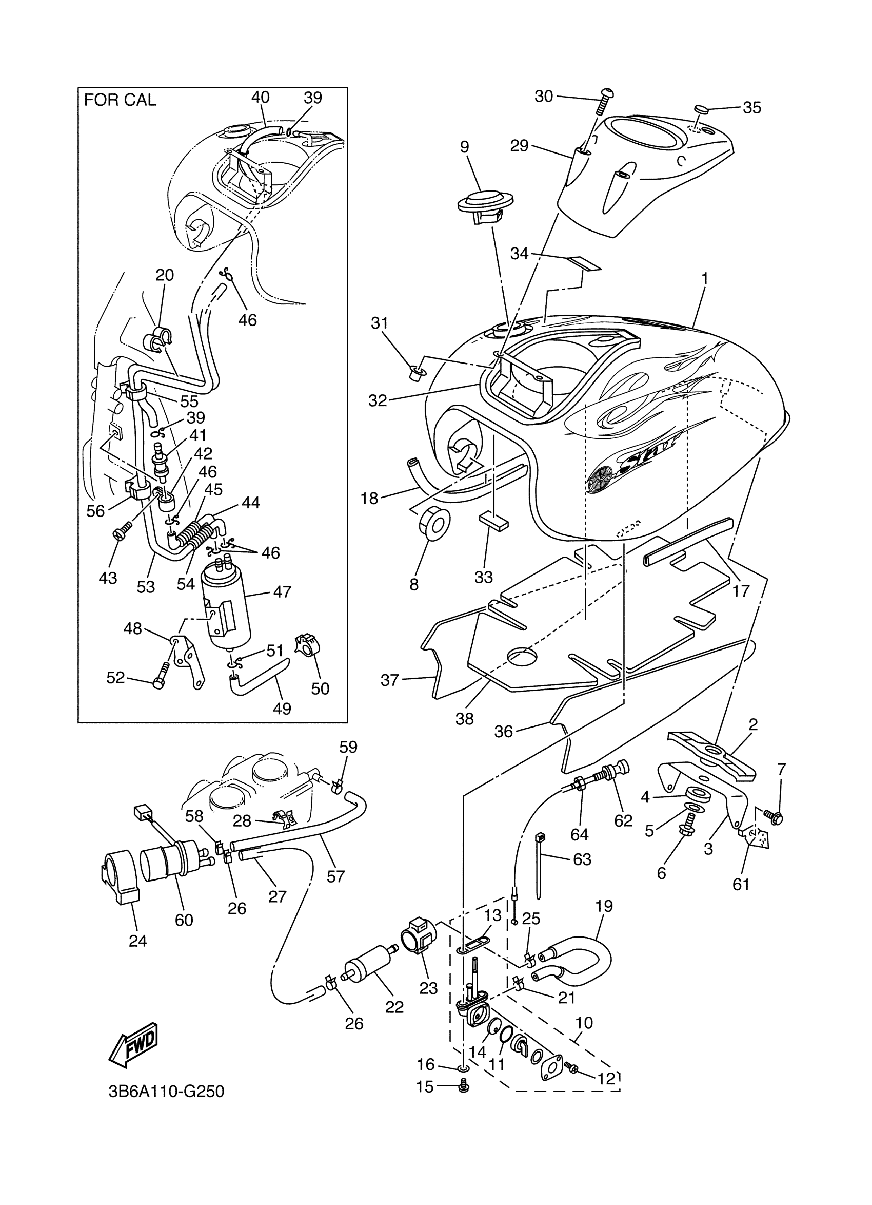 Yamaha XVS65XCB (V STAR 650 MIDNIGHT CUSTOM CA) 5S14 2008 FUEL TANK Diagram