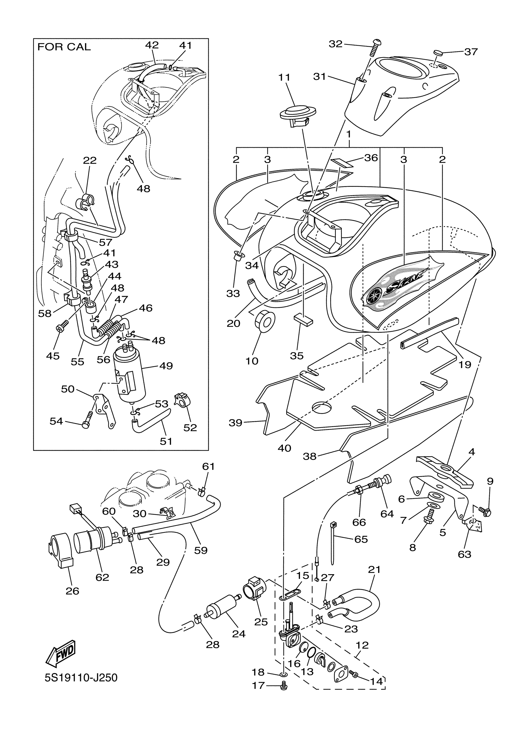 Yamaha XVS65ZCB (V STAR 650 MIDNIGHT CUSTOM CA) 5S1A 2010 FUEL TANK Diagram