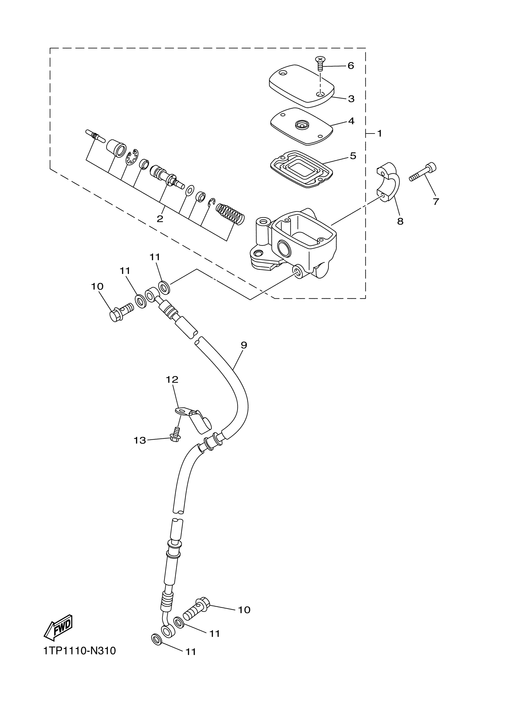 Yamaha XVS95CFR (BOLT) 1TP50 2015 FRONT MASTER CYLINDER Diagram