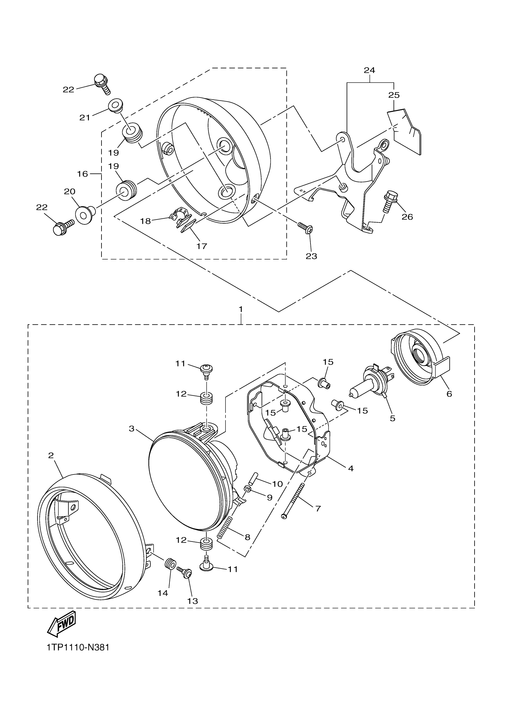 Yamaha XVS95CGY (BOLT R SPEC) 2DXG0 2016 HEADLIGHT Diagram