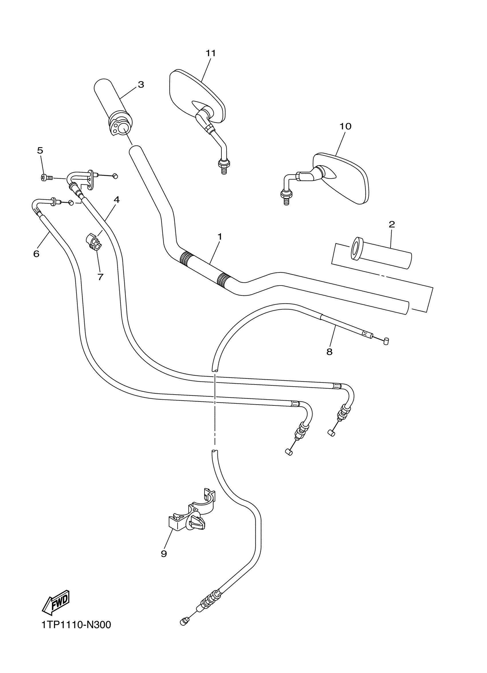 Yamaha XVS95CGY (BOLT R SPEC) 2DXG0 2016 STEERING HANDLE CABLE Diagram