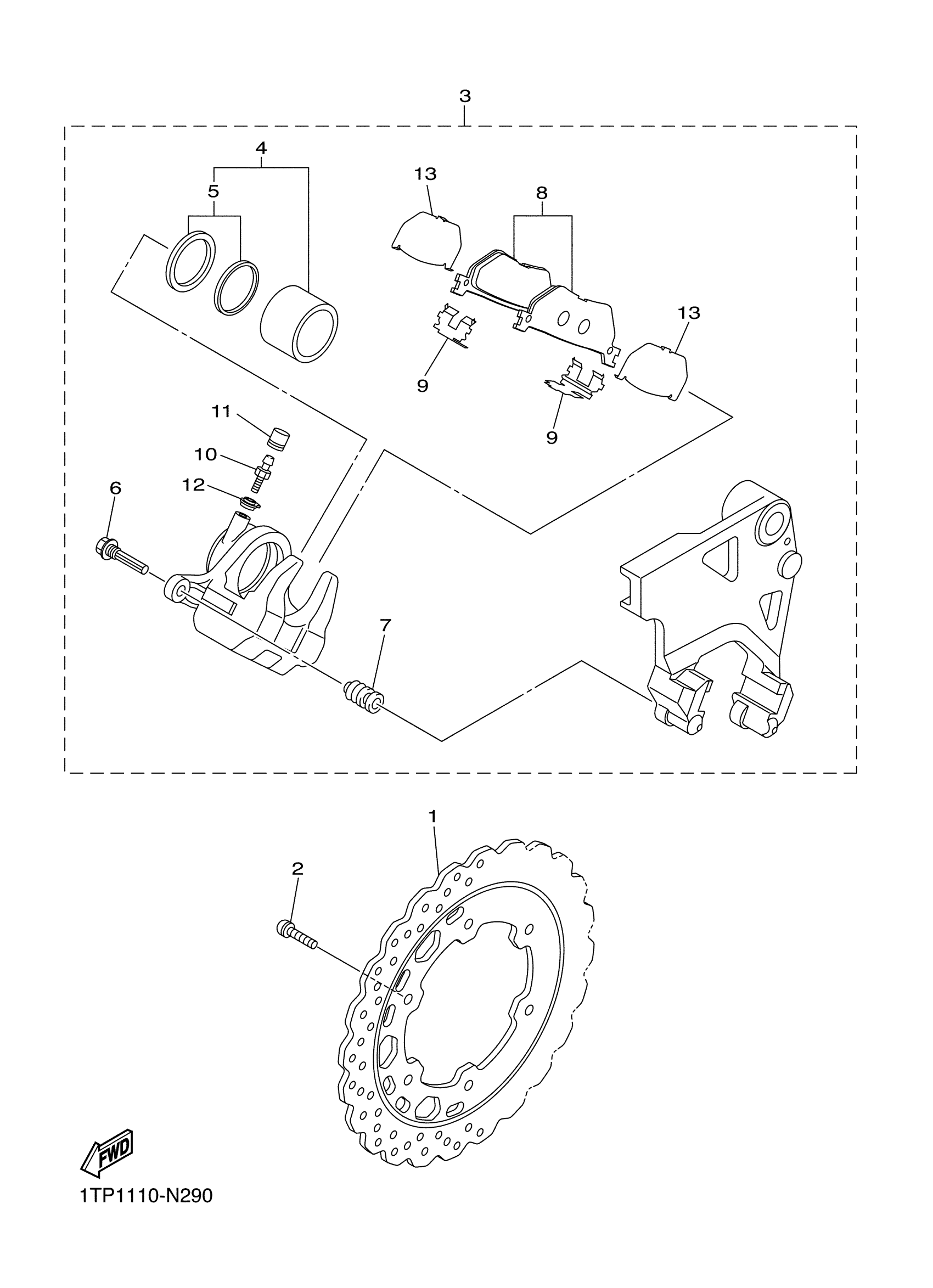 Yamaha XVS95CMCB (BOLT R-SPEC CA) BS5V 2021 REAR BRAKE CALIPER Diagram