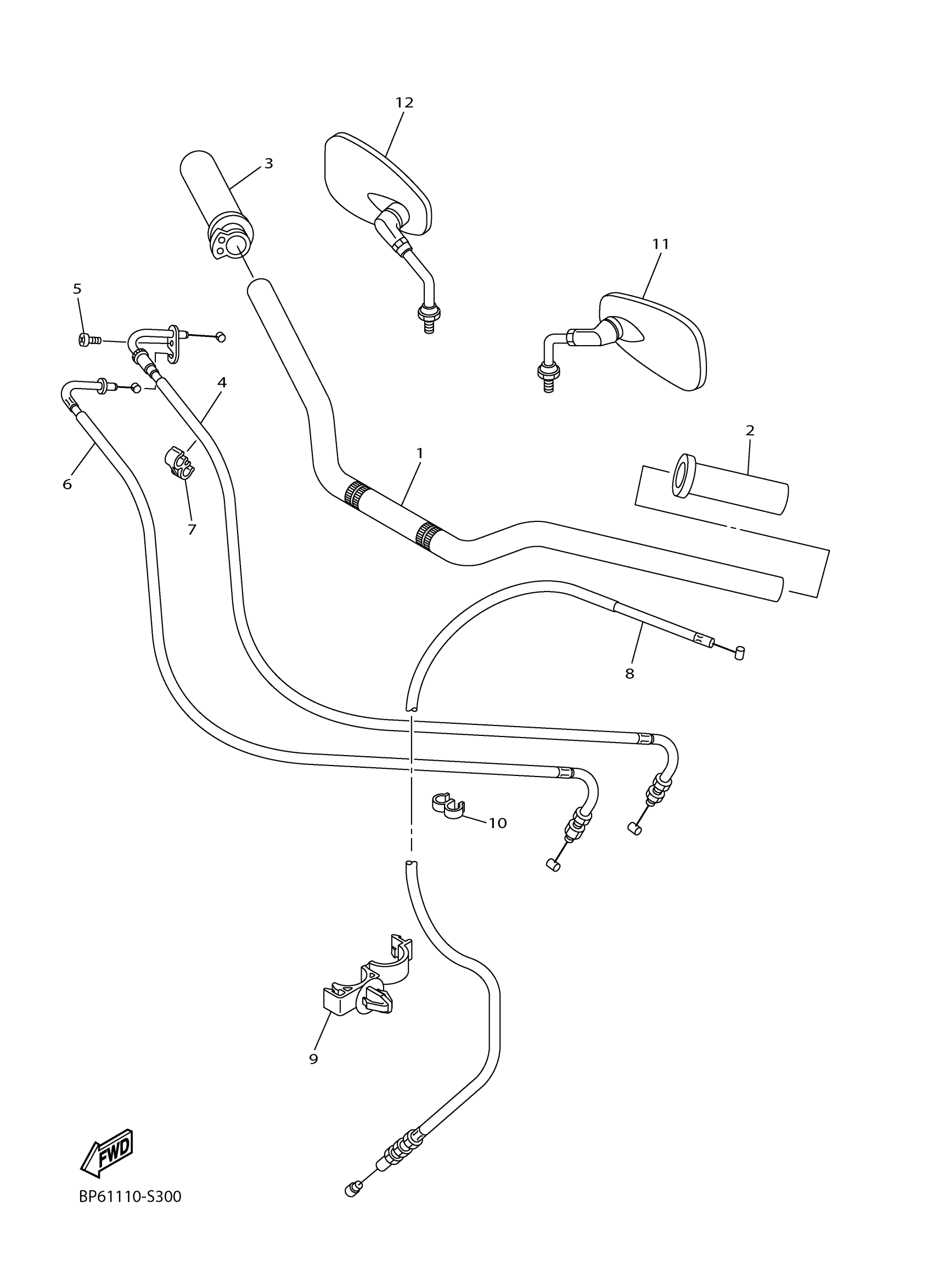 Yamaha XVS95CNGY (BOLT R-SPEC) BDU4 2022 STEERING HANDLE & CABLE Diagram