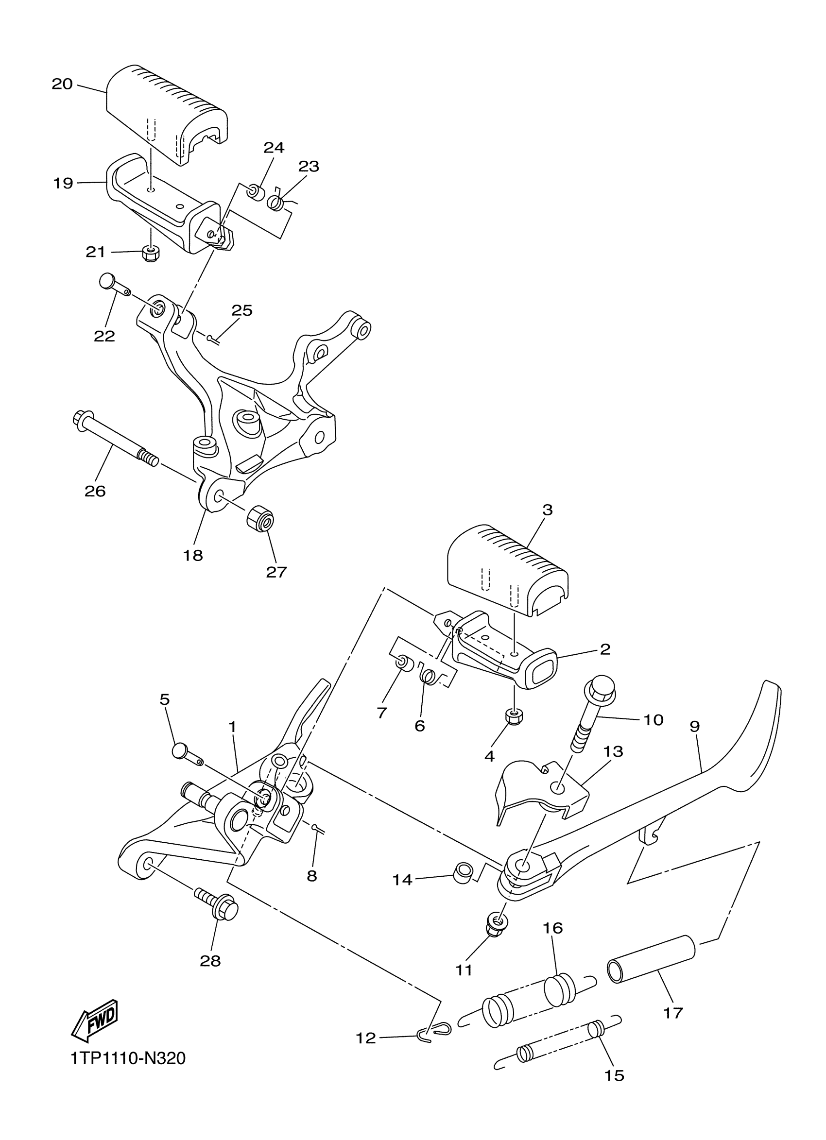 Yamaha XVS95CPGY (BOLT R SPEC) BDU8 2023 STAND & FOOTREST Diagram