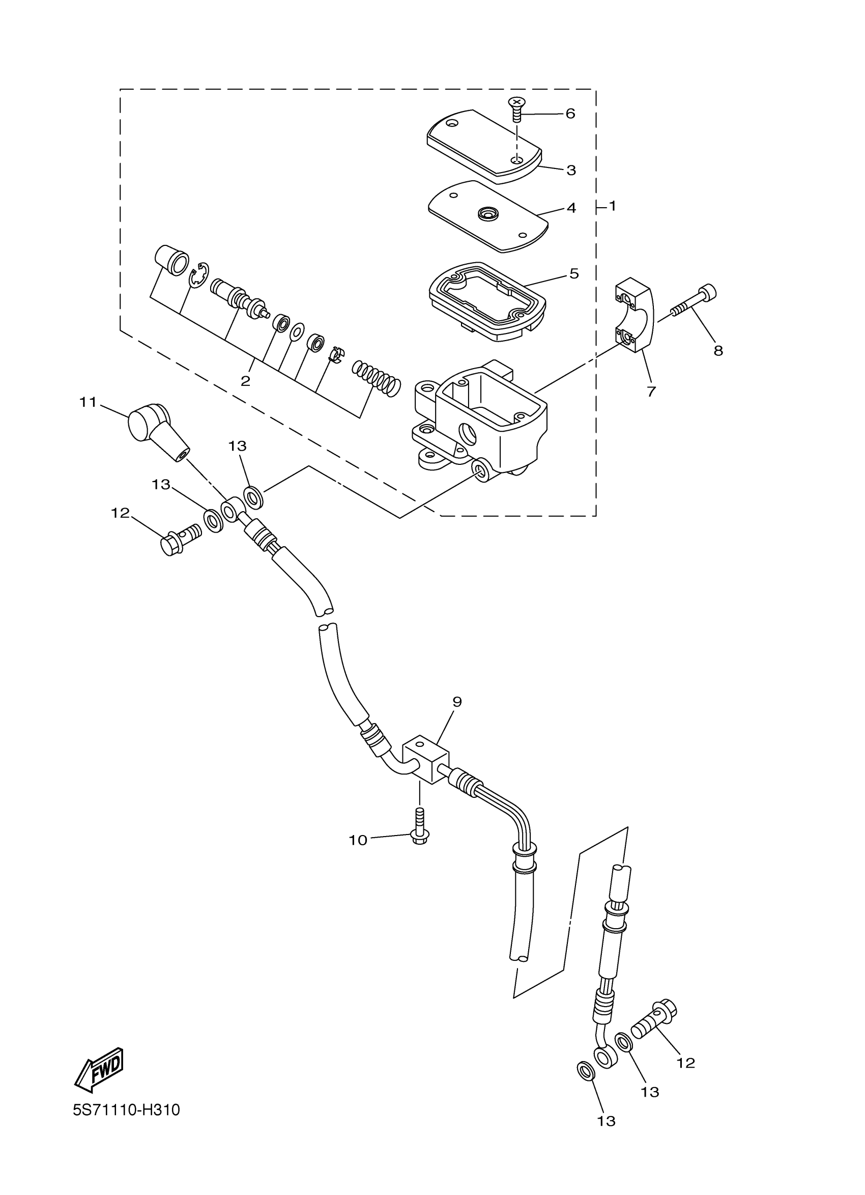 Yamaha XVS95FO (V STAR 950) 5S7K0 2015 FRONT MASTER CYLINDER Diagram