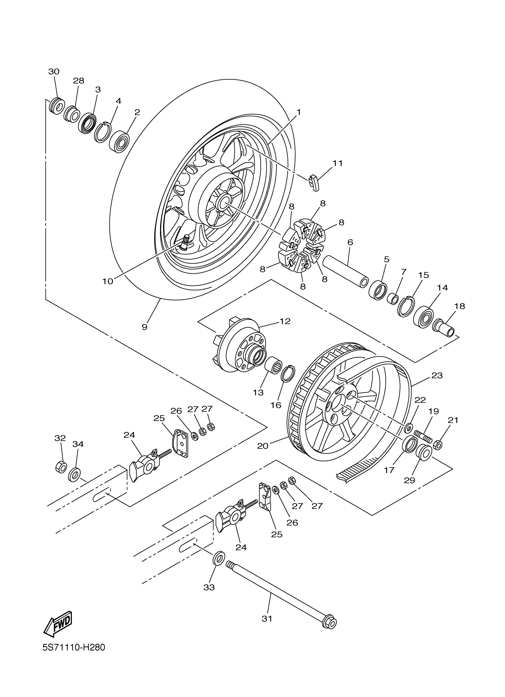 Yamaha XVS95FO (V STAR 950) 5S7K0 2015 REAR WHEEL Diagram