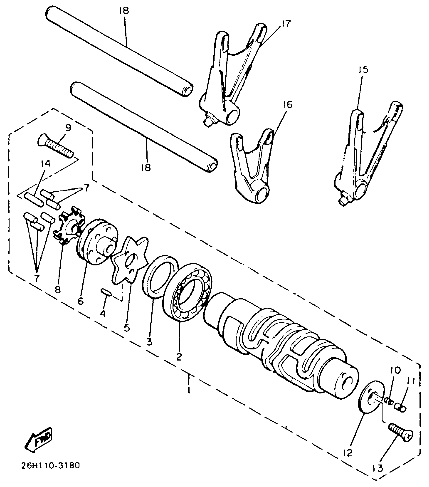 Yamaha XVZ12TDK (XVZ12TDK) 1983 SHIFT CAM FORK Diagram