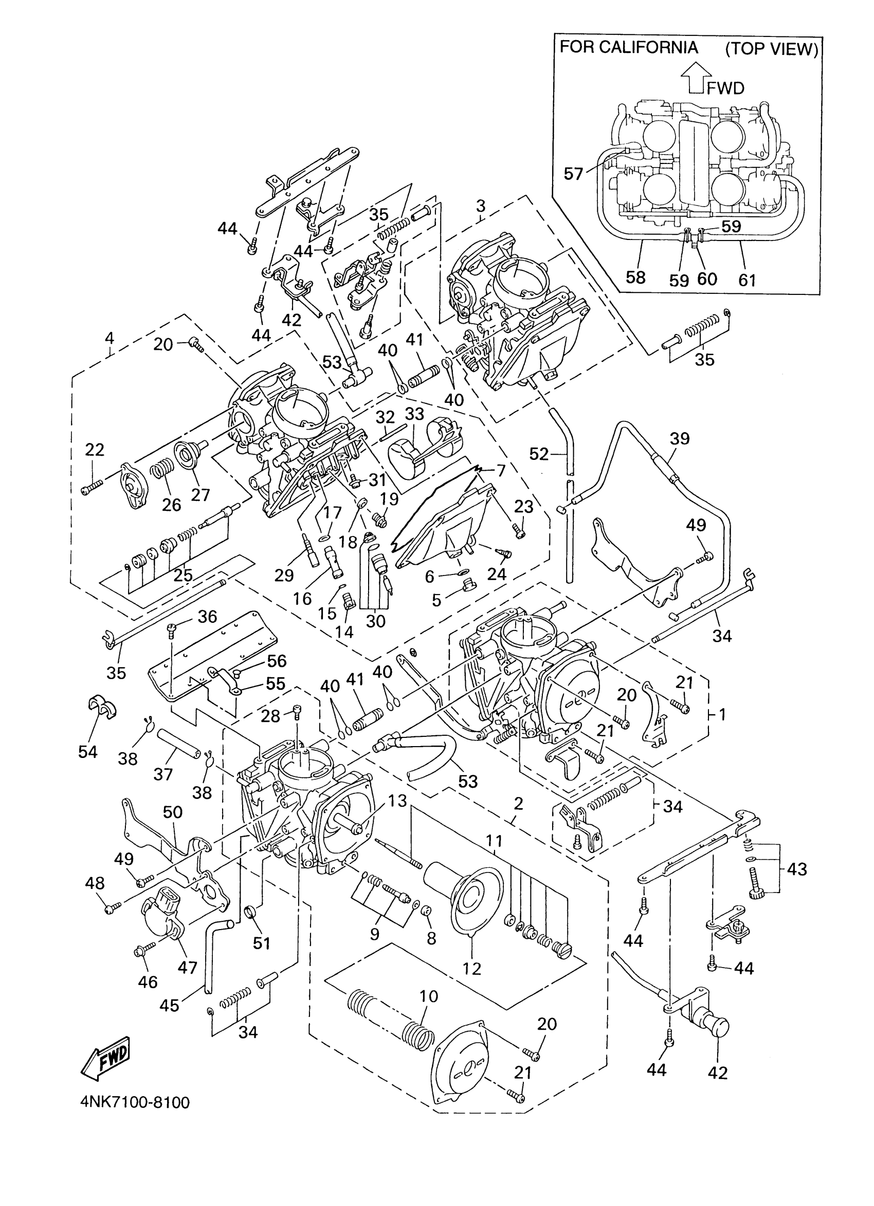 Yamaha XVZ1300AMC (ROYAL STAR BOULEVARD CA) 4NKD2 2000 CARBURETOR Diagram