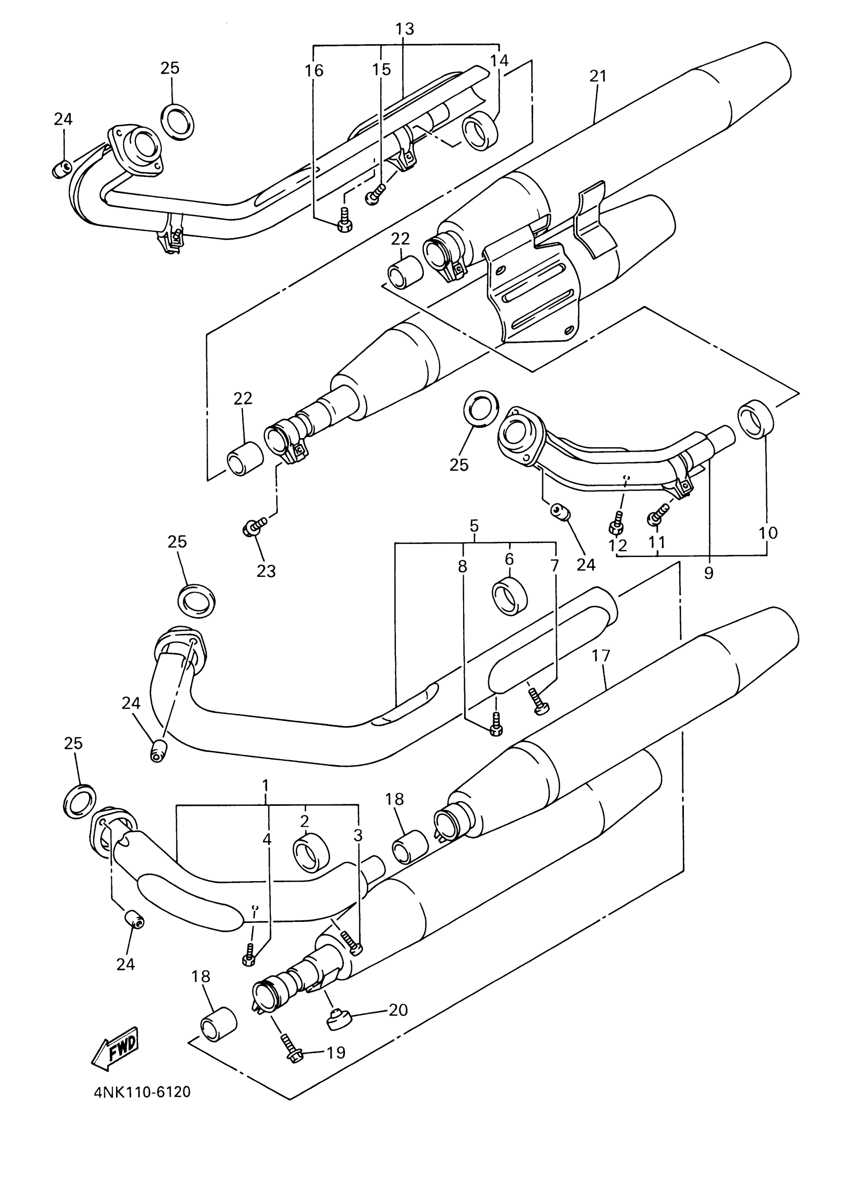 Yamaha XVZ1300AMC (ROYAL STAR BOULEVARD CA) 4NKD2 2000 EXHAUST Diagram