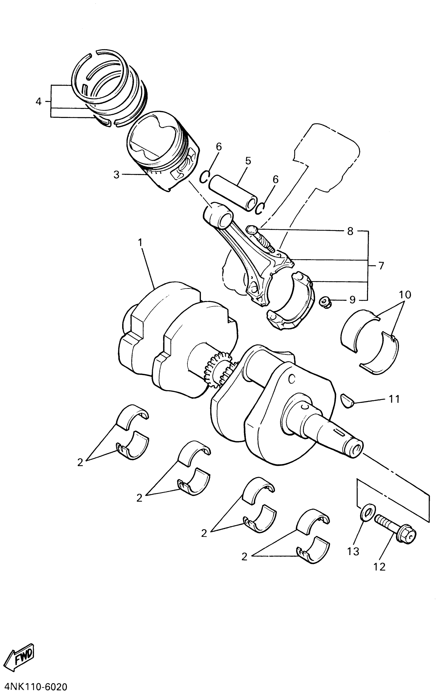 Yamaha XVZ1300ANC (ROYAL STAR BOULEVARD CA) 4NKH 2001 CRANKSHAFT PISTON Diagram