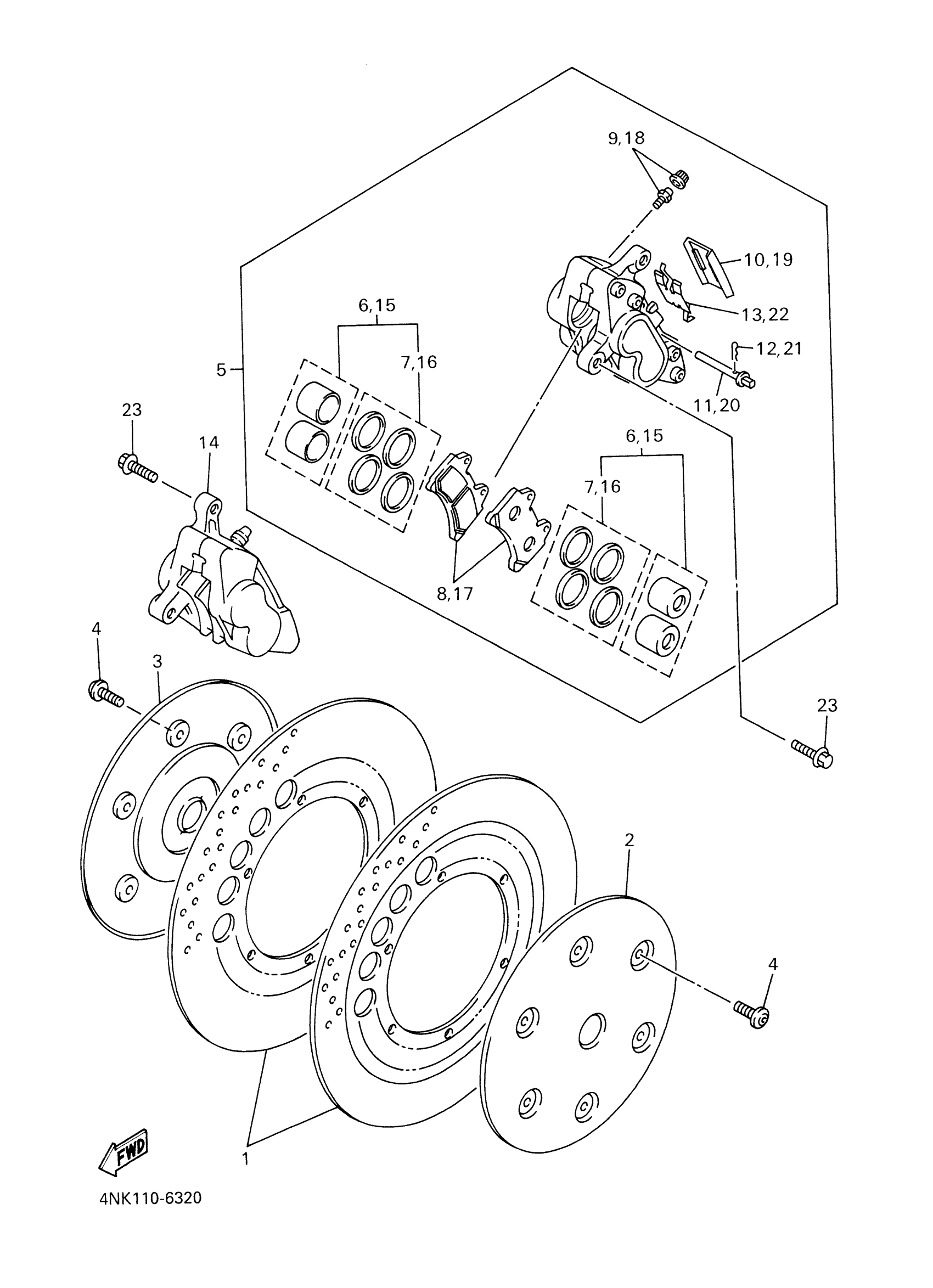 Yamaha XVZ1300LTMC (ROYAL STAR TOUR DELUXE CA) 4YEE 2000 FRONT BRAKE CALIPER Diagram