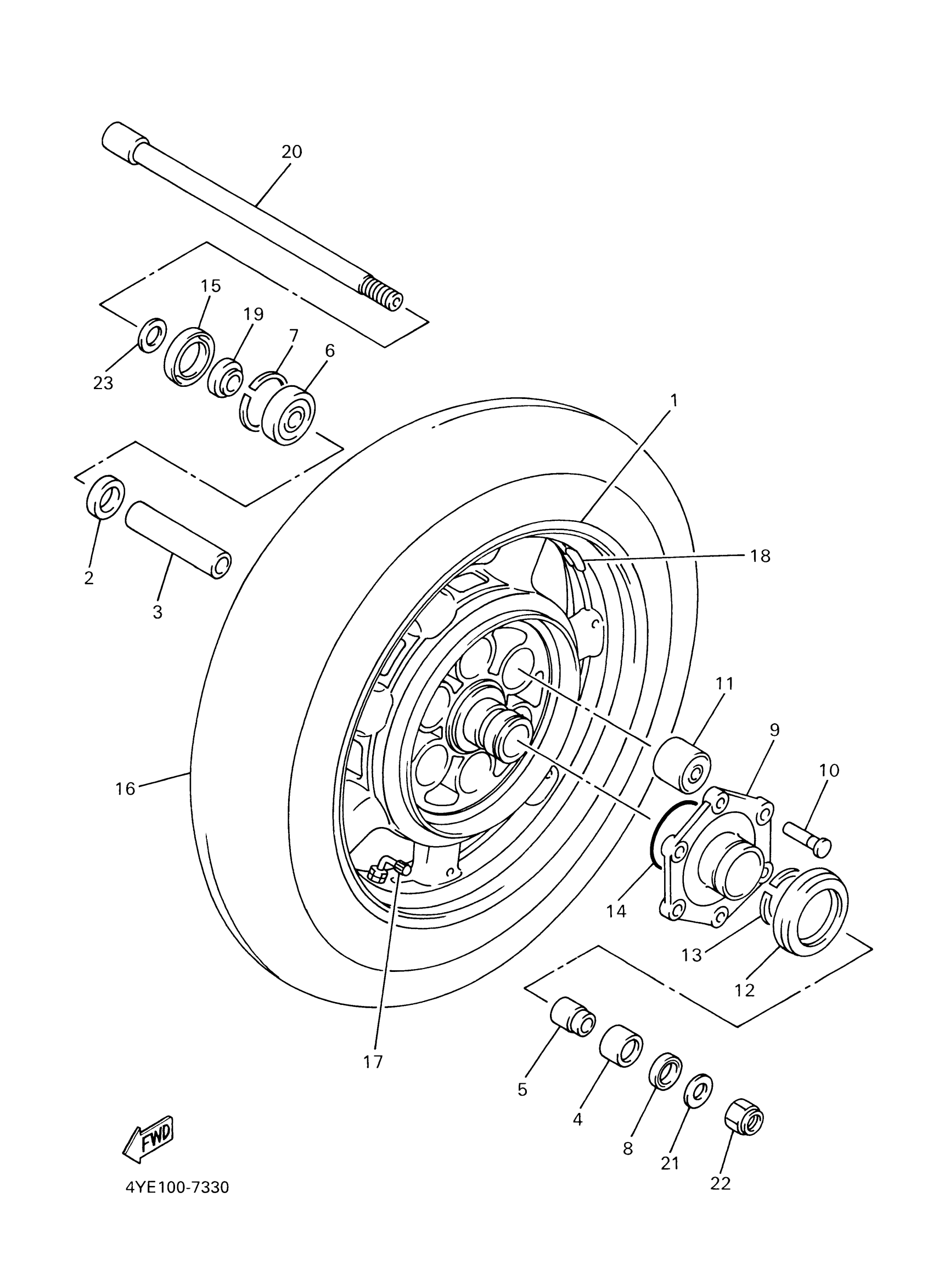 Yamaha XVZ1300LTMC (ROYAL STAR TOUR DELUXE CA) 4YEE 2000 REAR WHEEL Diagram