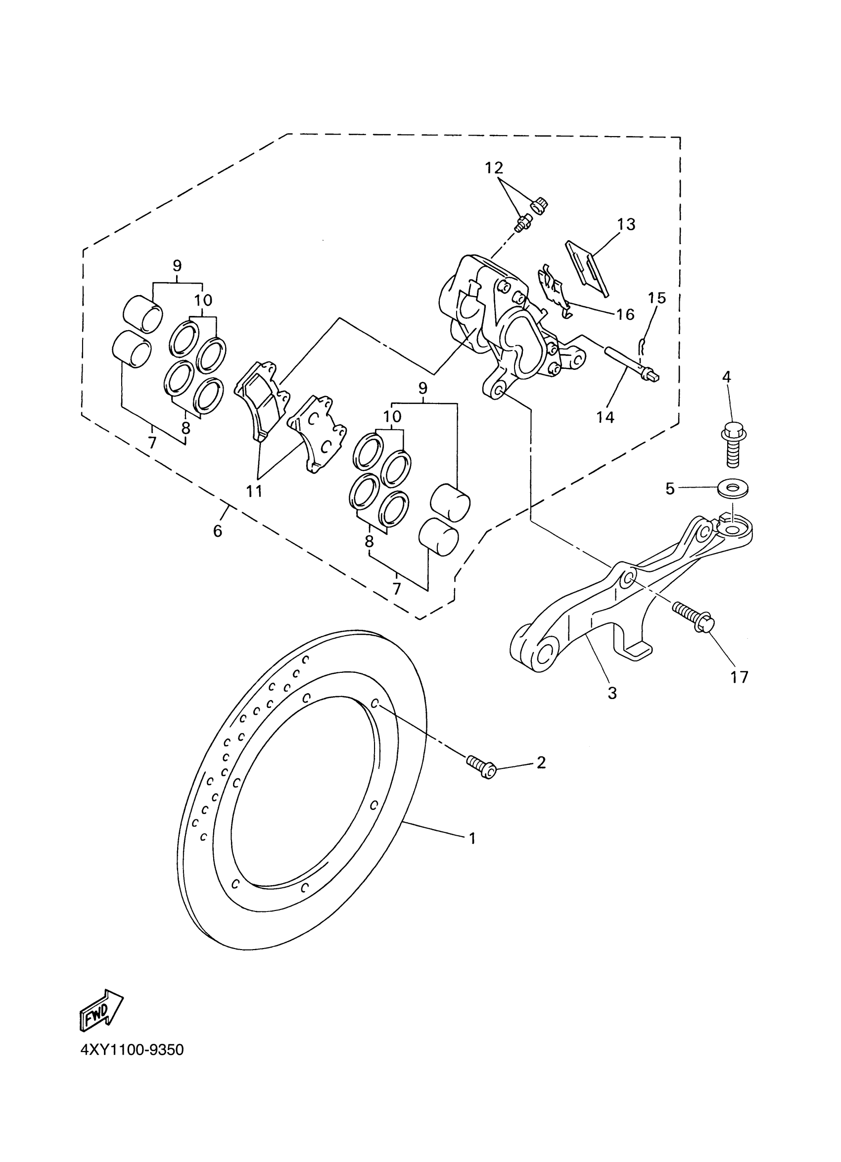 Yamaha XVZ1300TFMC (ROYAL STAR VENTURE CA) 4XY5 2000 REAR BRAKE CALIPER Diagram