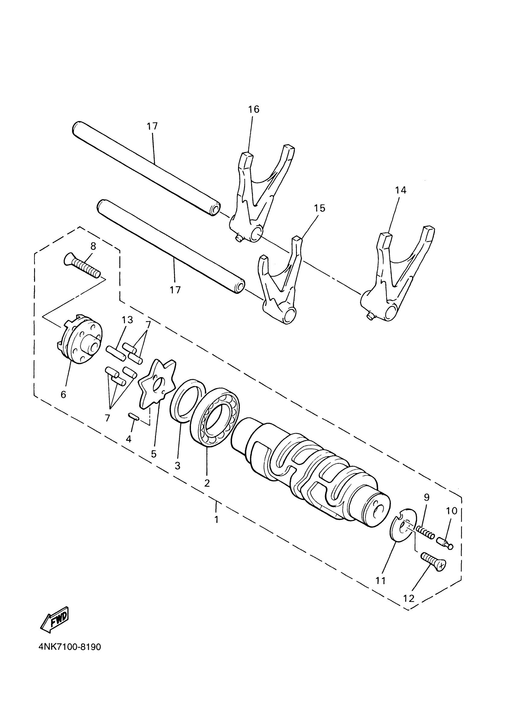 Yamaha XVZ1300TFMC (ROYAL STAR VENTURE CA) 4XY5 2000 SHIFT CAM FORK Diagram