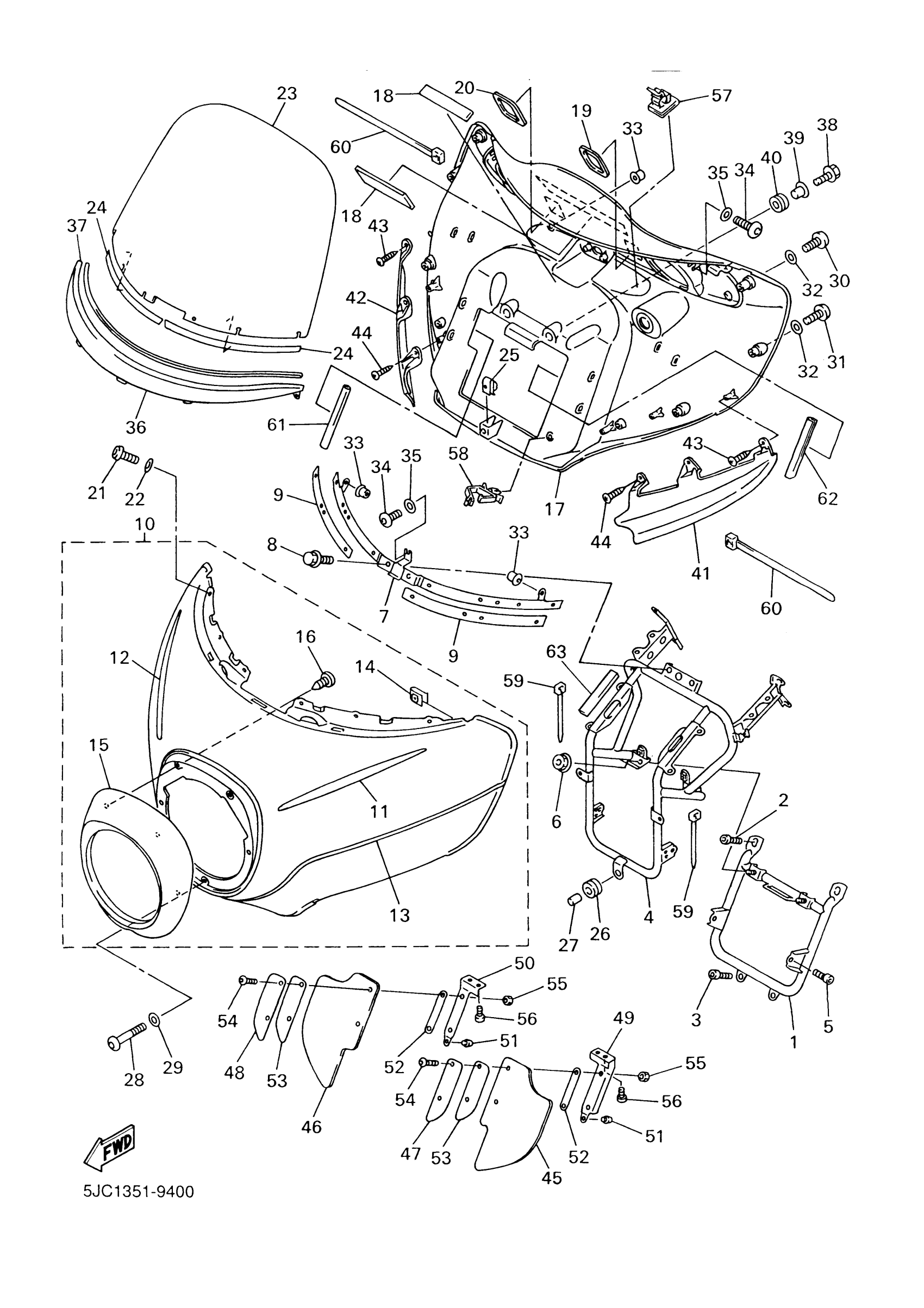 Yamaha XVZ1300TFNC (VENTURE CA) 4XY8 2001 COWLING 1 Diagram